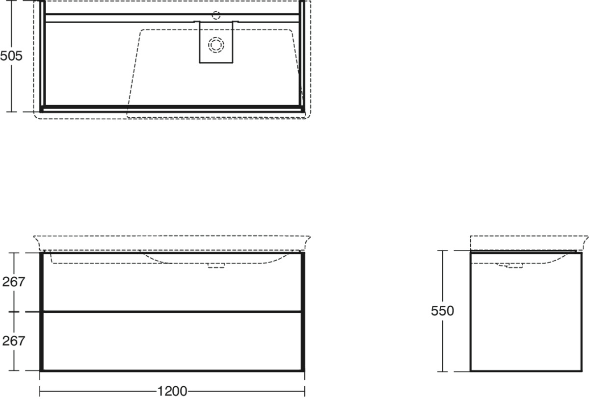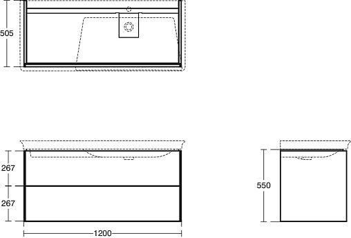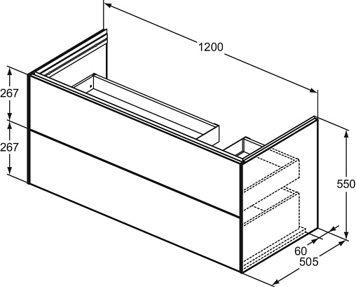 CONCA Асимметричная тумба без столешницы 120х50 см, правая версия, комбинированная система для удобного использования (открытие "Push to open" + закрытие "Soft close"). Внутренняя отделка ящиков цвета антрацит. 2 ящика. Для монтажа с раковинами La Dolce Vita Asymmetrical Right 126 см E2633, E2707, E2697