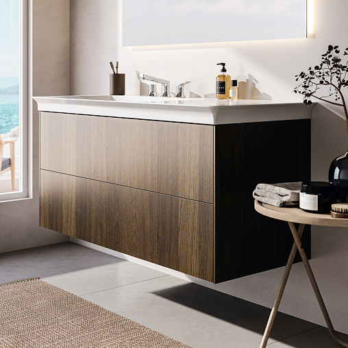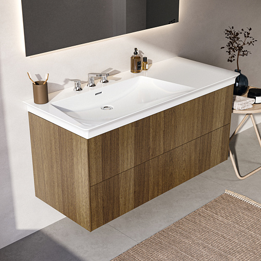 Модуль под раковину Conca 120х50,5х55 см, темный орех, левый, система push-to-open, Ideal Standard