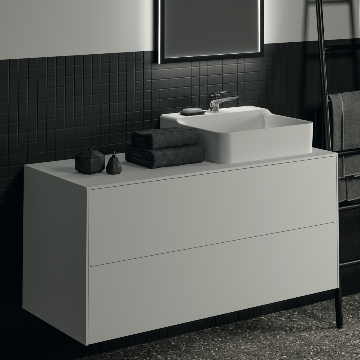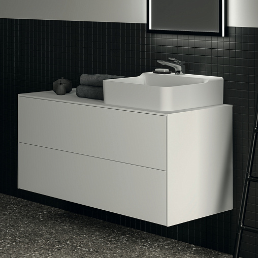 Модуль под раковину Conca 120х50,5х55 см, вырез в столешнице под заказ, белый матовый, система push-to-open, Ideal Standard