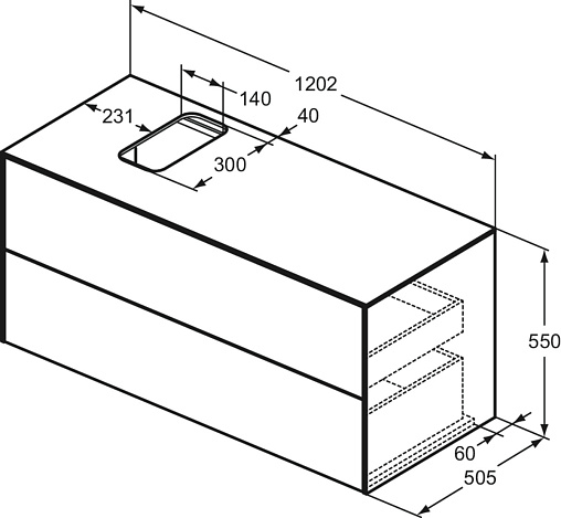 Модуль под раковину Conca 120х50,5х55 см, вырез в столешнице под заказ, матовый закат, система push-to-open, Ideal Standard