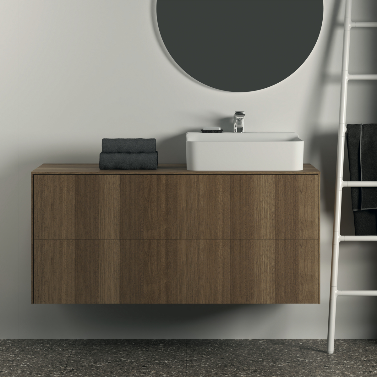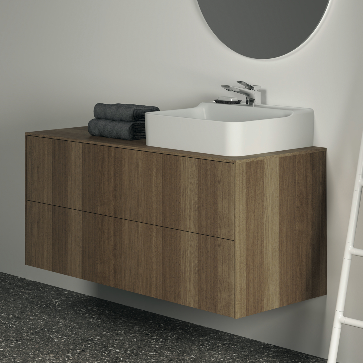 Модуль под раковину Conca 120х50,5х55 см, вырез в столешнице под заказ, темный орех, система push-to-open, Ideal Standard