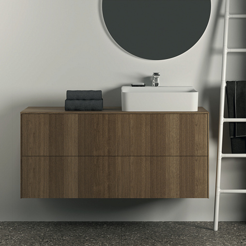 CONCA Тумба 120 см для раковины (вырез в столешнице под заказ). Комбинированная система для удобного использования (открытие "Push to open" + закрытие "Soft close"). Внутренняя отделка ящиков цвета антрацит. 2 ящика.
