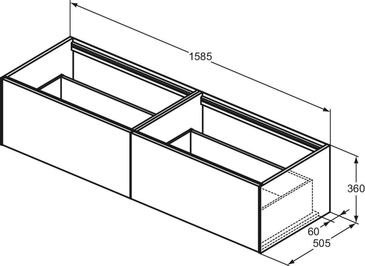 CONCA Тумба 160 см для раковины, без столешницы. Комбинированная система для удобного использования (открытие "Push to open" + закрытие "Soft close"). Внутренняя отделка ящиков цвета антрацит. 2 ящика. Для монтажа со столешницей из литьевого мрамора (без выреза / вырез под заказ) 160 см T4202.