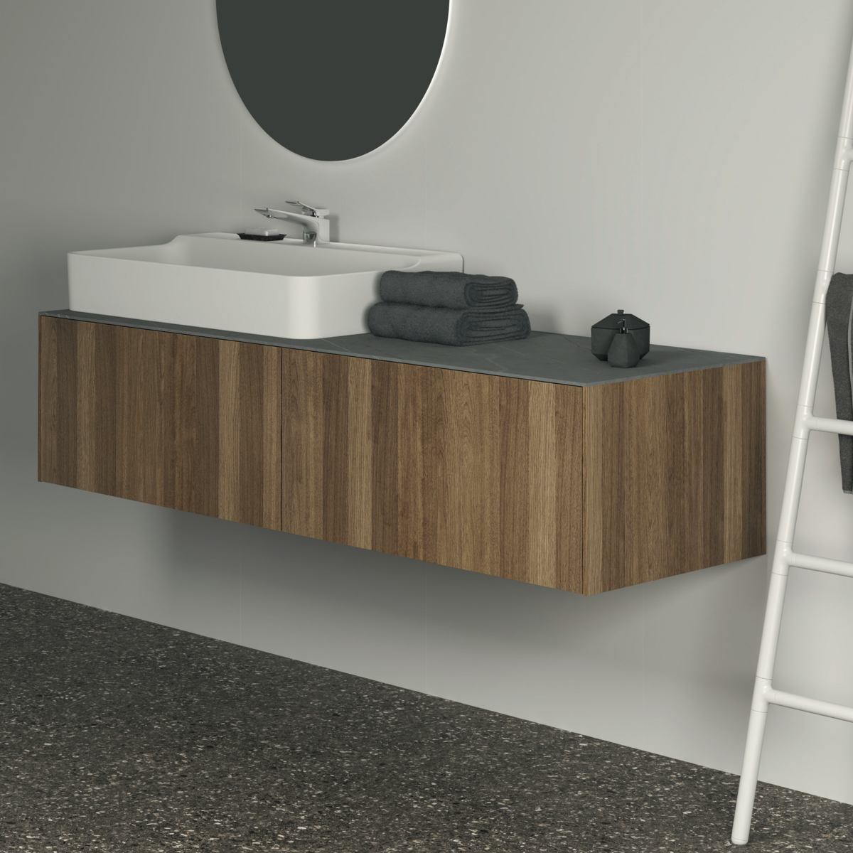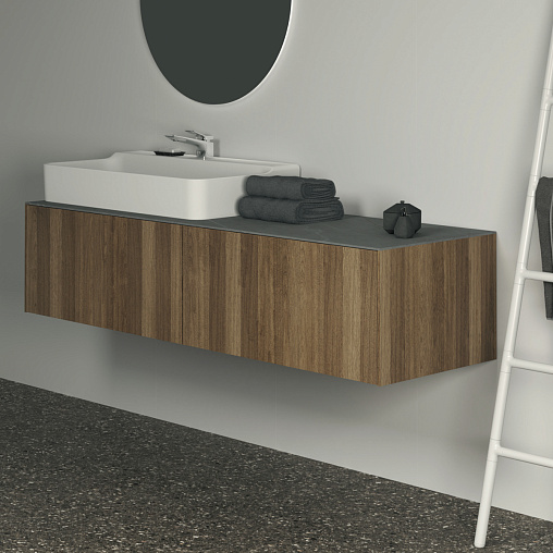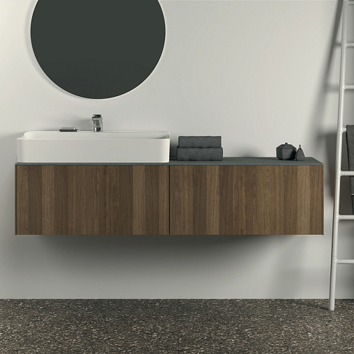 CONCA Тумба 160 см для раковины, без столешницы. Комбинированная система для удобного использования (открытие "Push to open" + закрытие "Soft close"). Внутренняя отделка ящиков цвета антрацит. 2 ящика. Для монтажа со столешницей из литьевого мрамора (без выреза / вырез под заказ) 160 см T4202.
