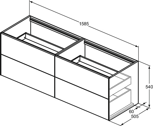 Модуль под раковину Conca 158,5х50,5х54 см, 4 ящика, темный орех, система push-to-open, Ideal Standard