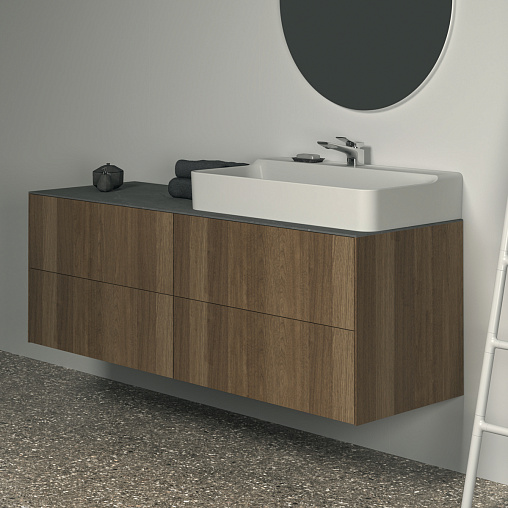 CONCA Тумба 160 см для раковины, без столешницы. Комбинированная система для удобного использования (открытие "Push to open" + закрытие "Soft close"). Внутренняя отделка ящиков цвета антрацит. 4 ящика. Для монтажа со столешницей из литьевого мрамора (без выреза / вырез под заказ) 160 см T4202.