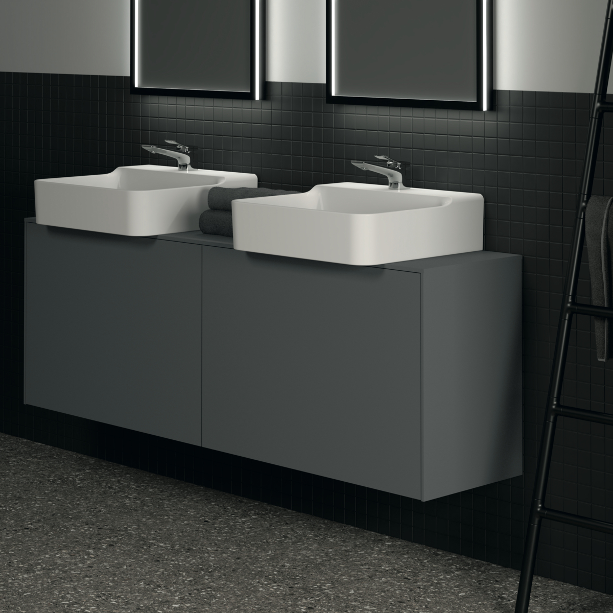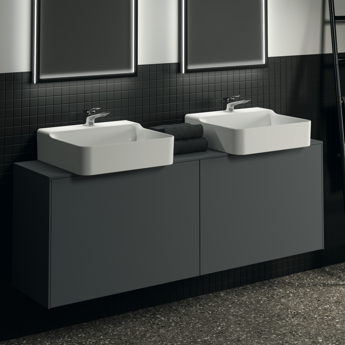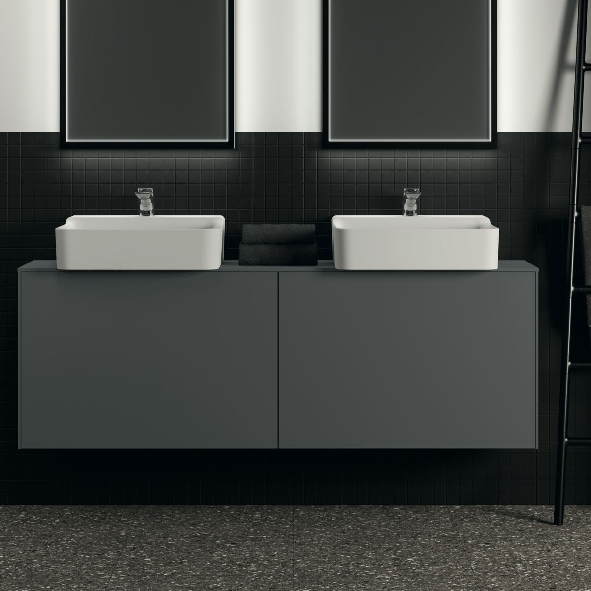 Модуль под раковину Conca 158,7х37,3х55 см, вырез в столешнице под заказ, антрацит матовый, система push-to-open, Ideal Standard