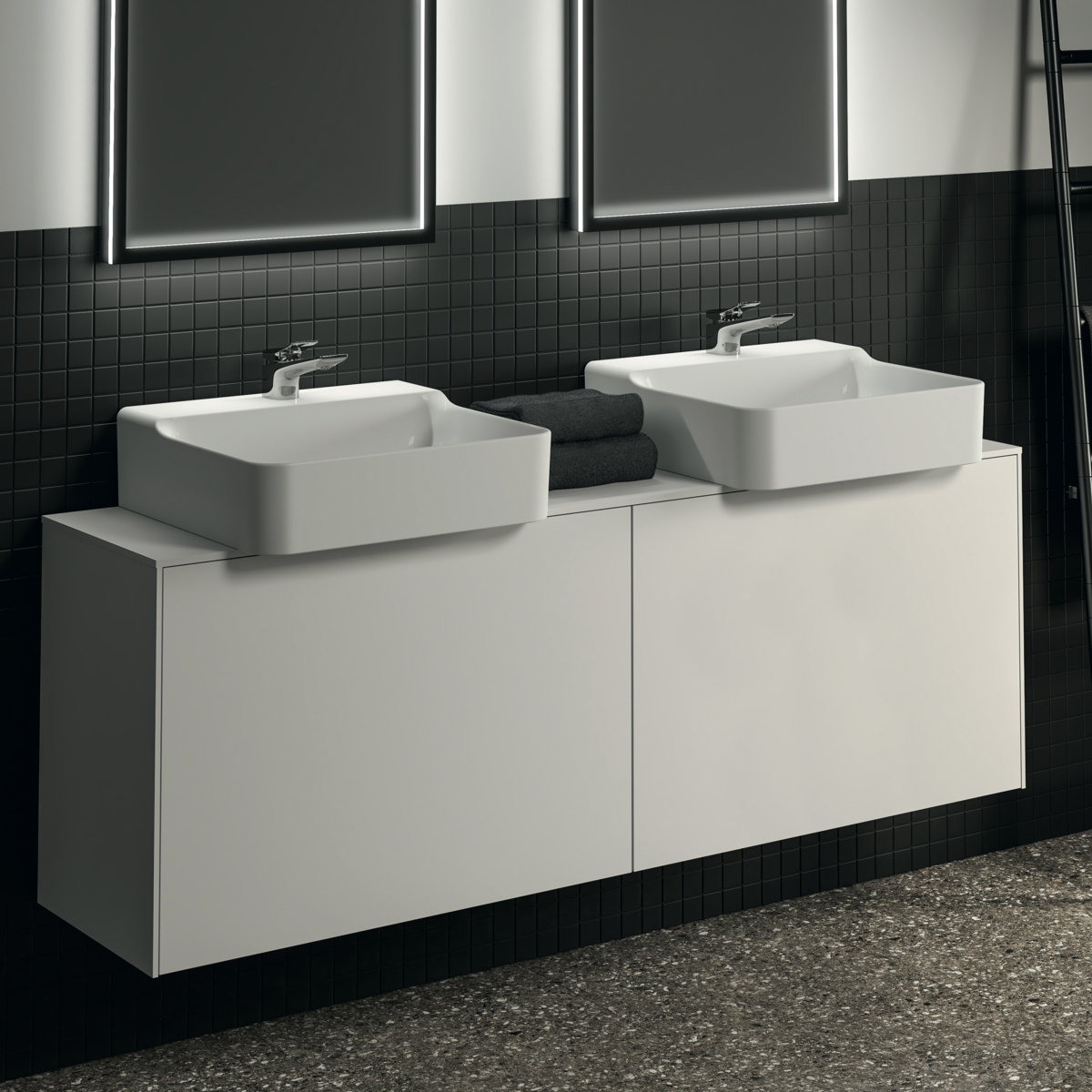 Модуль под раковину Conca 158,7х37,3х55 см, вырез в столешнице под заказ, белый матовый, система push-to-open, Ideal Standard