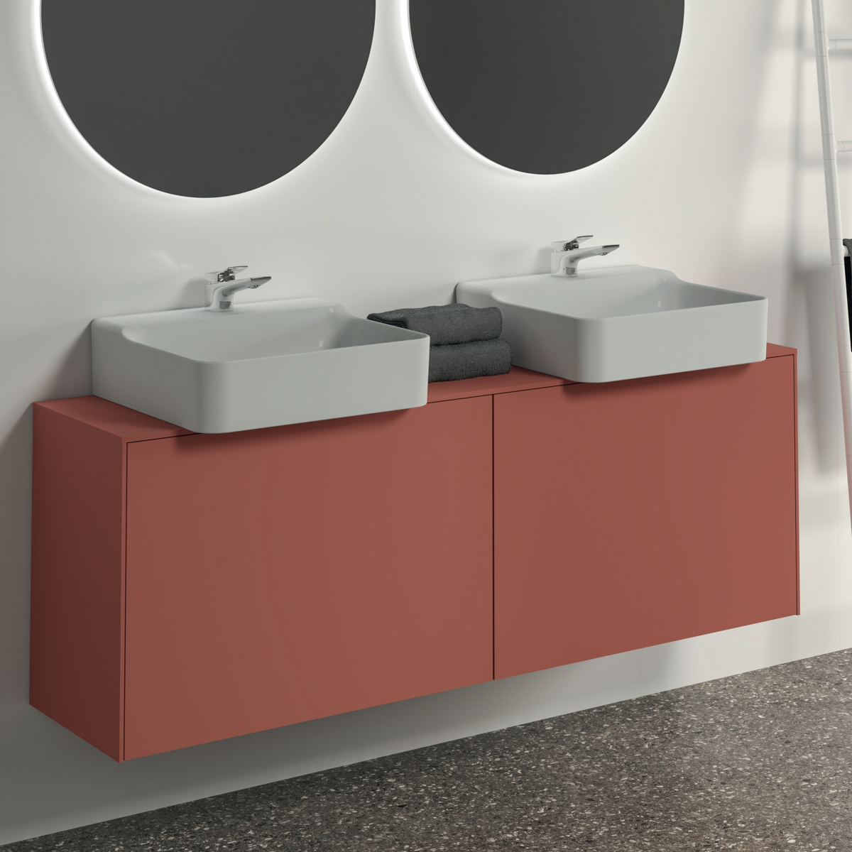 Модуль под раковину Conca 158,7х37,3х55 см, вырез в столешнице под заказ, матовый закат, система push-to-open, Ideal Standard