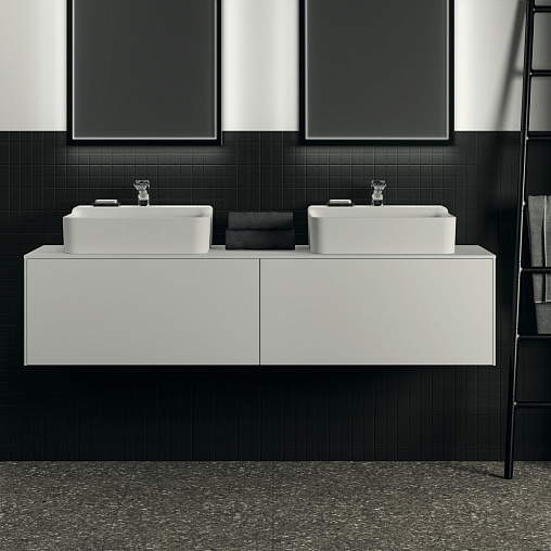 Модуль под раковину Conca 158,7х50,5х37 см, вырез в столешнице под заказ, белый матовый, система push-to-open, Ideal Standard