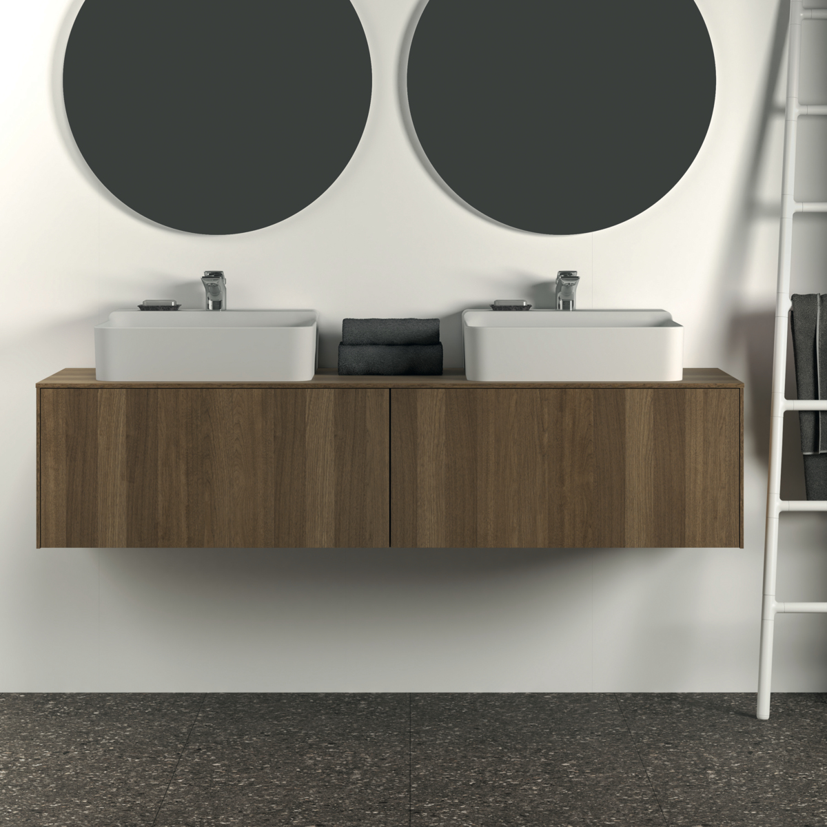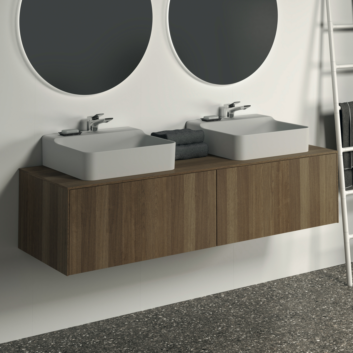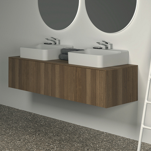 Модуль под раковину Conca 158,7х50,5х37 см, вырез в столешнице под заказ, темный орех, система push-to-open, Ideal Standard