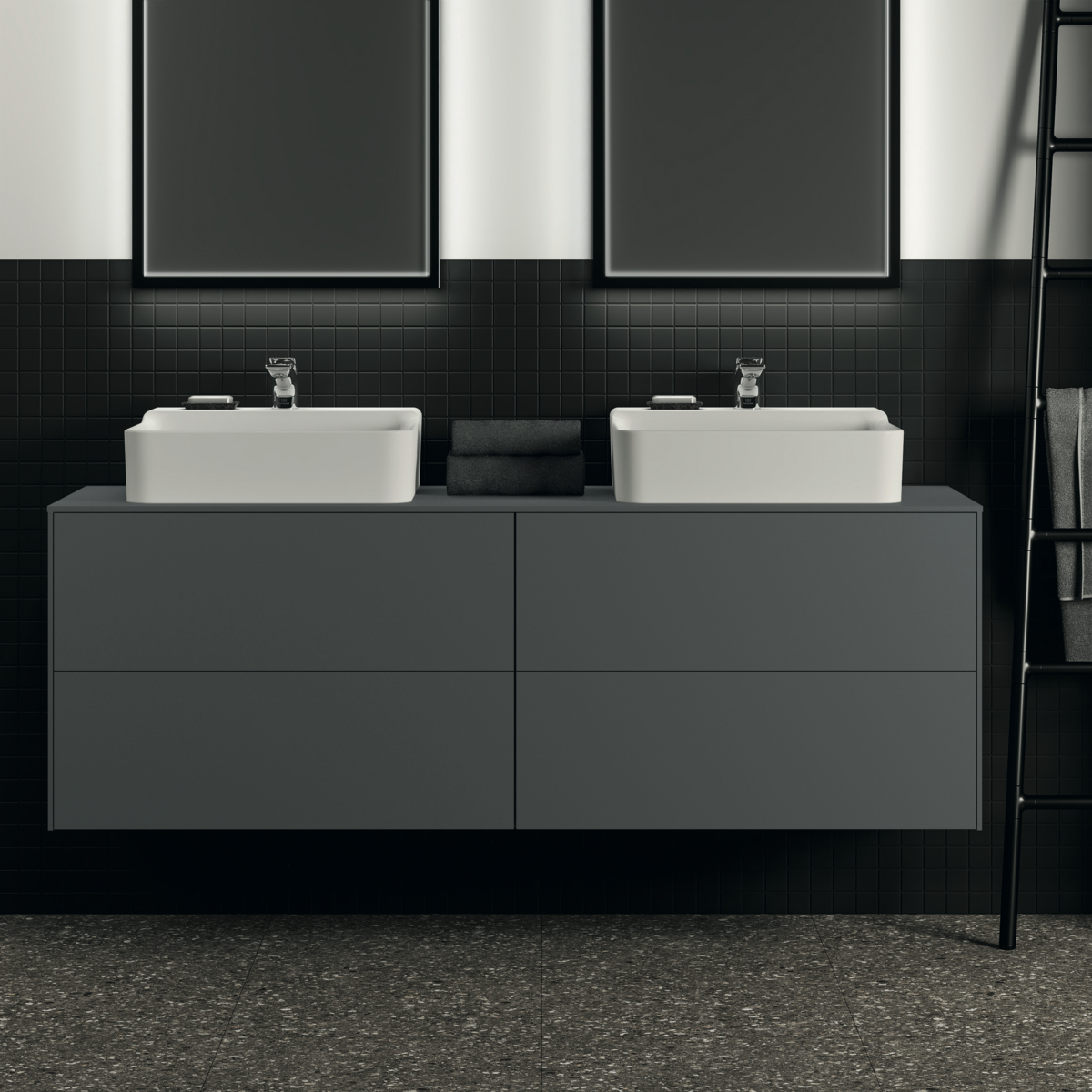 Модуль под раковину Conca 158,7х50,5х55 см, 4 ящика, вырез в столешнице под заказ, антрацит матовый, система push-to-open, Ideal Standard