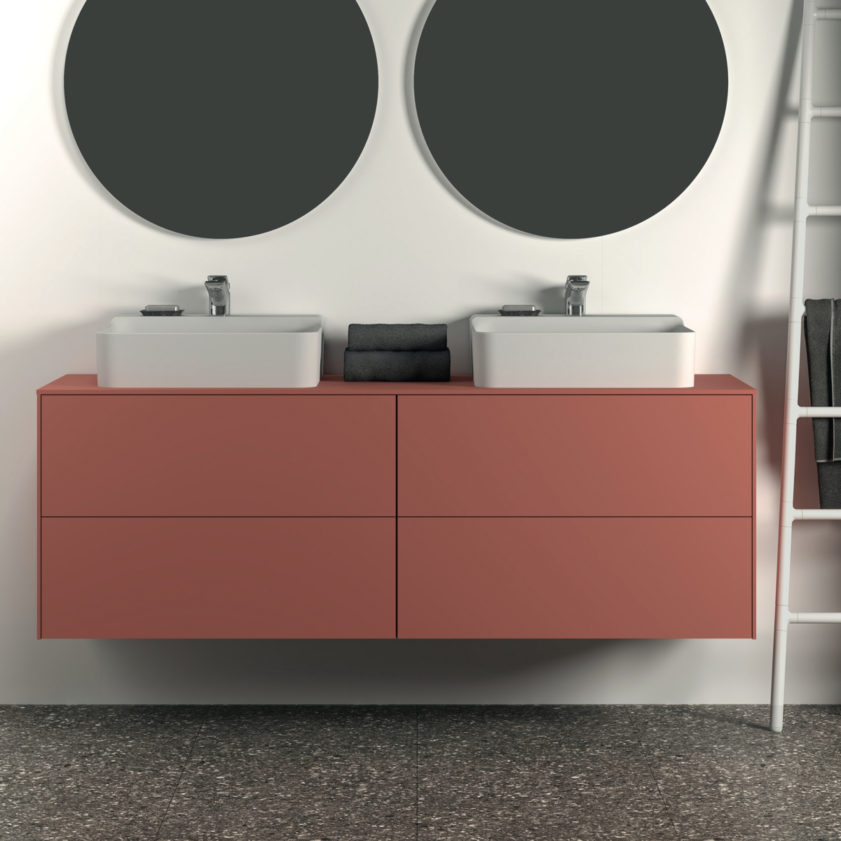CONCA Тумба 160 см для раковины, со столешницей (вырез под заказ). Комбинированная система для удобного использования (открытие "Push to open" + закрытие "Soft close"). Внутренняя отделка ящиков цвета антрацит. 4 ящика