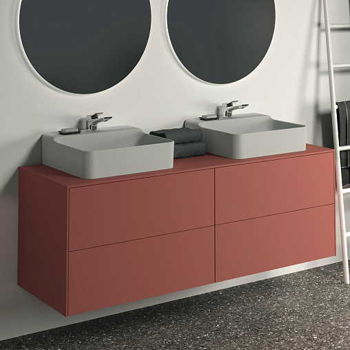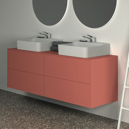 Модуль под раковину Conca 158,7х50,5х55 см, 4 ящика, вырез в столешнице под заказ, матовый закат, система push-to-open, Ideal Standard