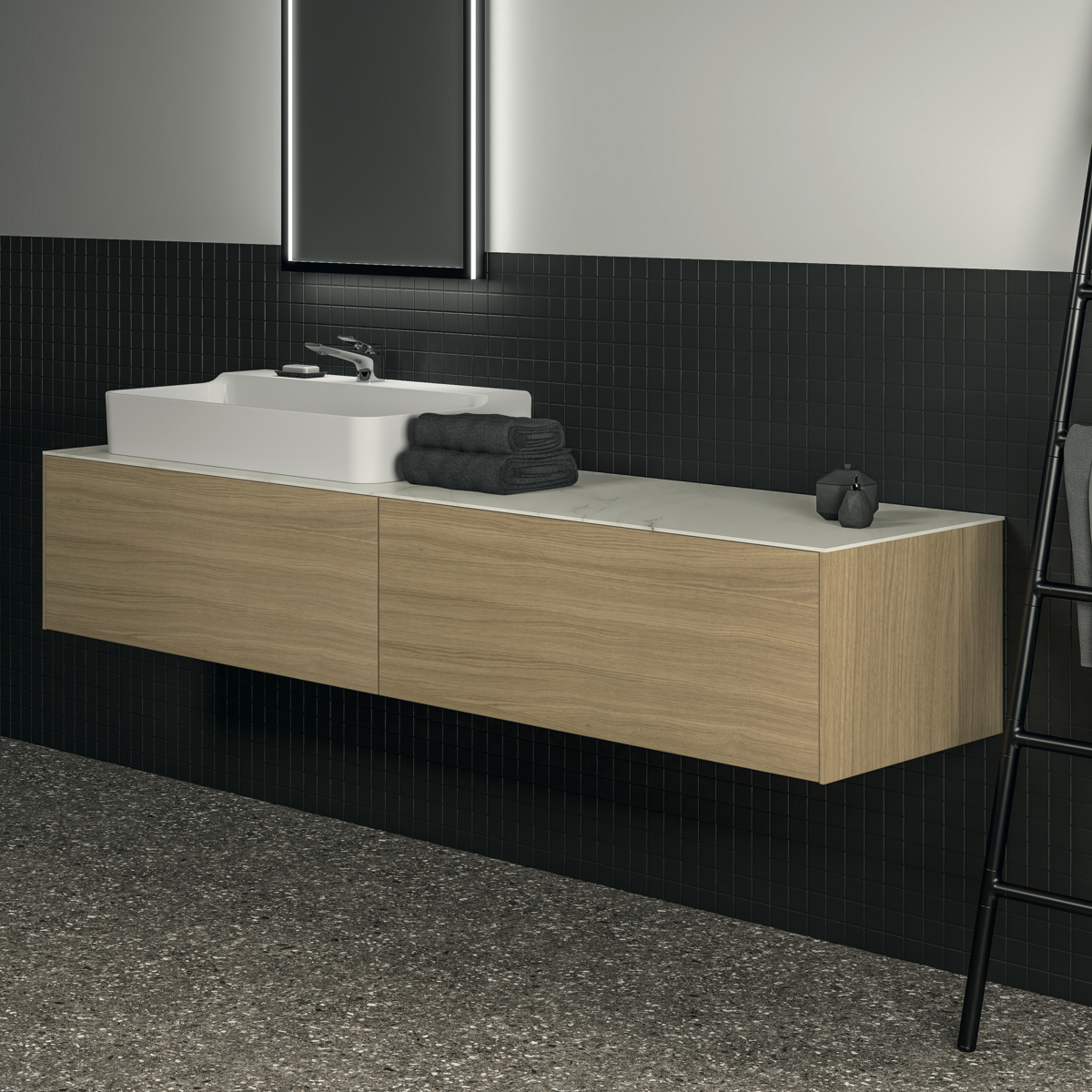 Модуль под раковину Conca 198,5х50,5х36 см, светлый дуб, система push-to-open, Ideal Standard