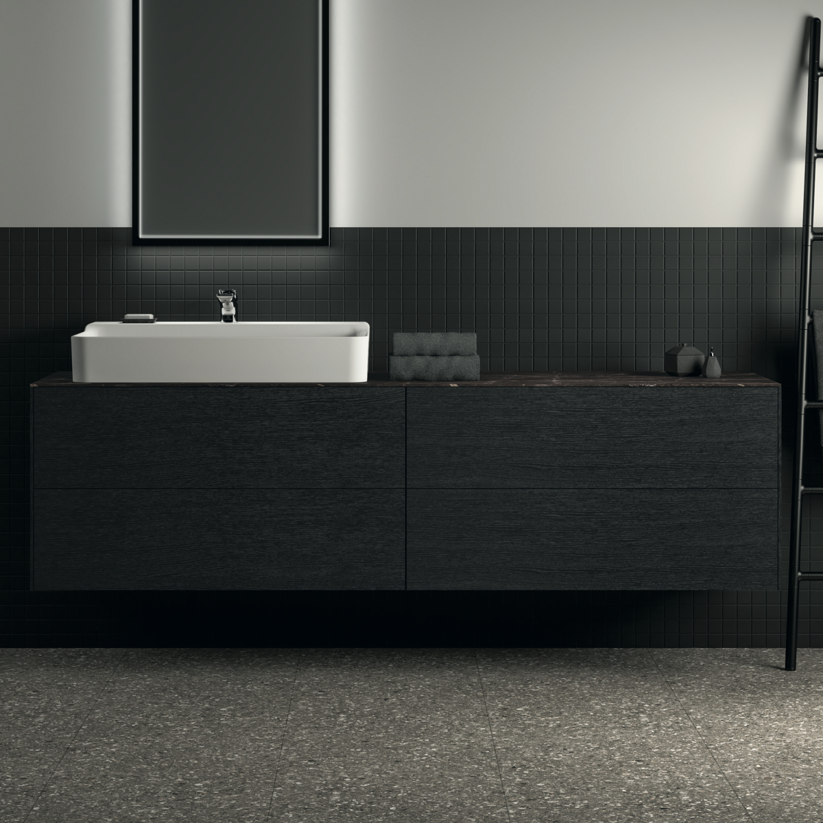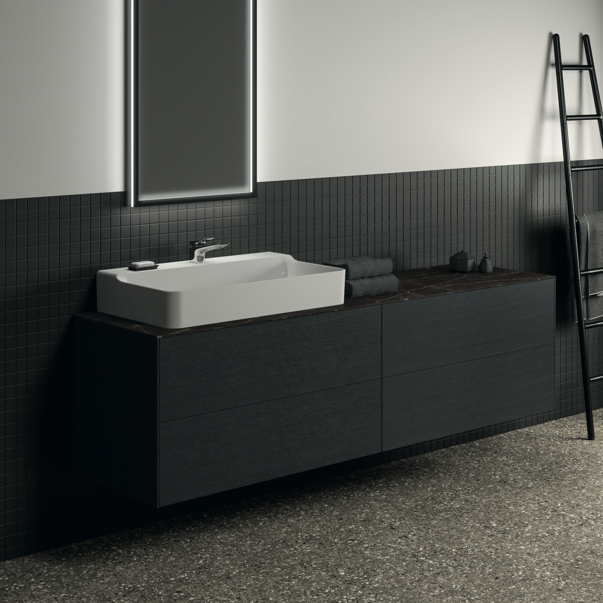 CONCA Тумба 200 см для раковины, без столешницы. Комбинированная система для удобного использования (открытие "Push to open" + закрытие "Soft close"). Внутренняя отделка ящиков цвета антрацит. 4 ящика. Для монтажа со столешницей из литьевого мрамора (без выреза / вырез под заказ) 200 см T4204.