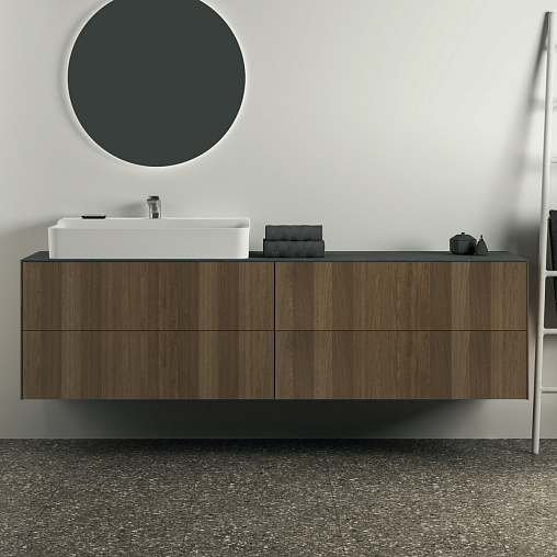 CONCA Тумба 200 см для раковины, без столешницы. Комбинированная система для удобного использования (открытие "Push to open" + закрытие "Soft close"). Внутренняя отделка ящиков цвета антрацит. 4 ящика. Для монтажа со столешницей из литьевого мрамора (без выреза / вырез под заказ) 200 см T4204.