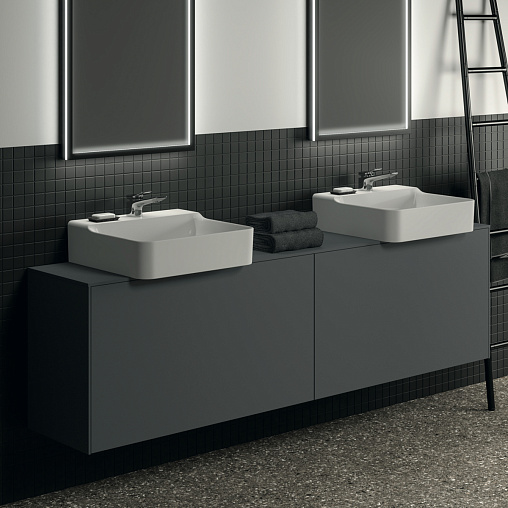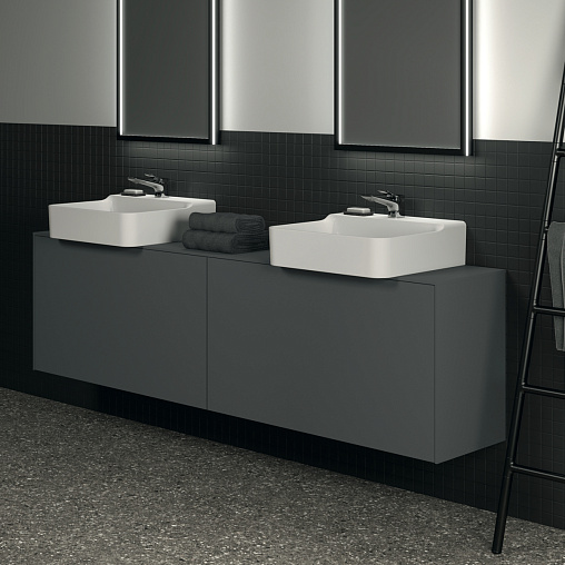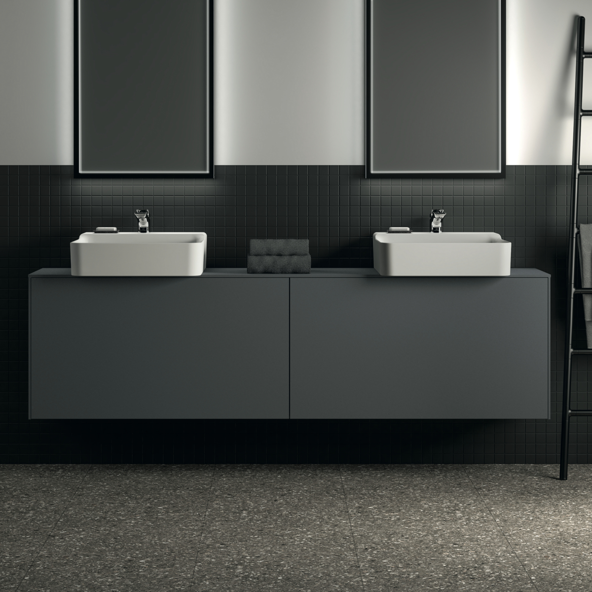 Модуль под раковину Conca 198,7х37,3х55 см, вырез в столешнице под заказ, антрацит матовый, система push-to-open, Ideal Standard