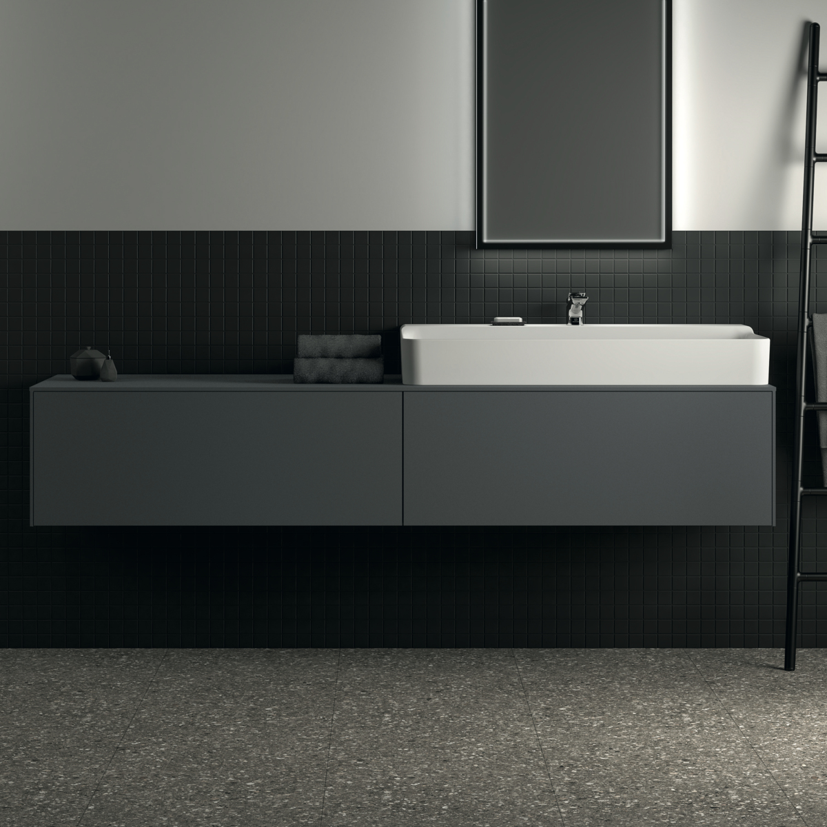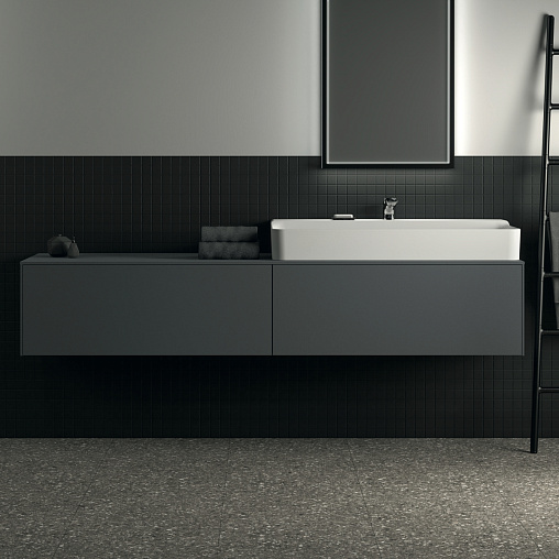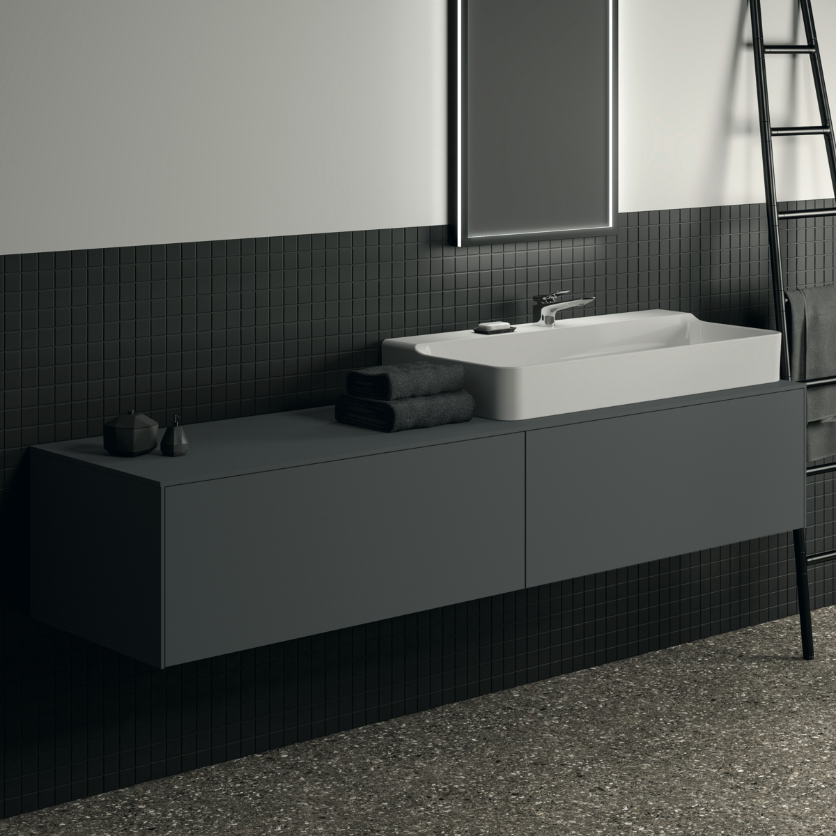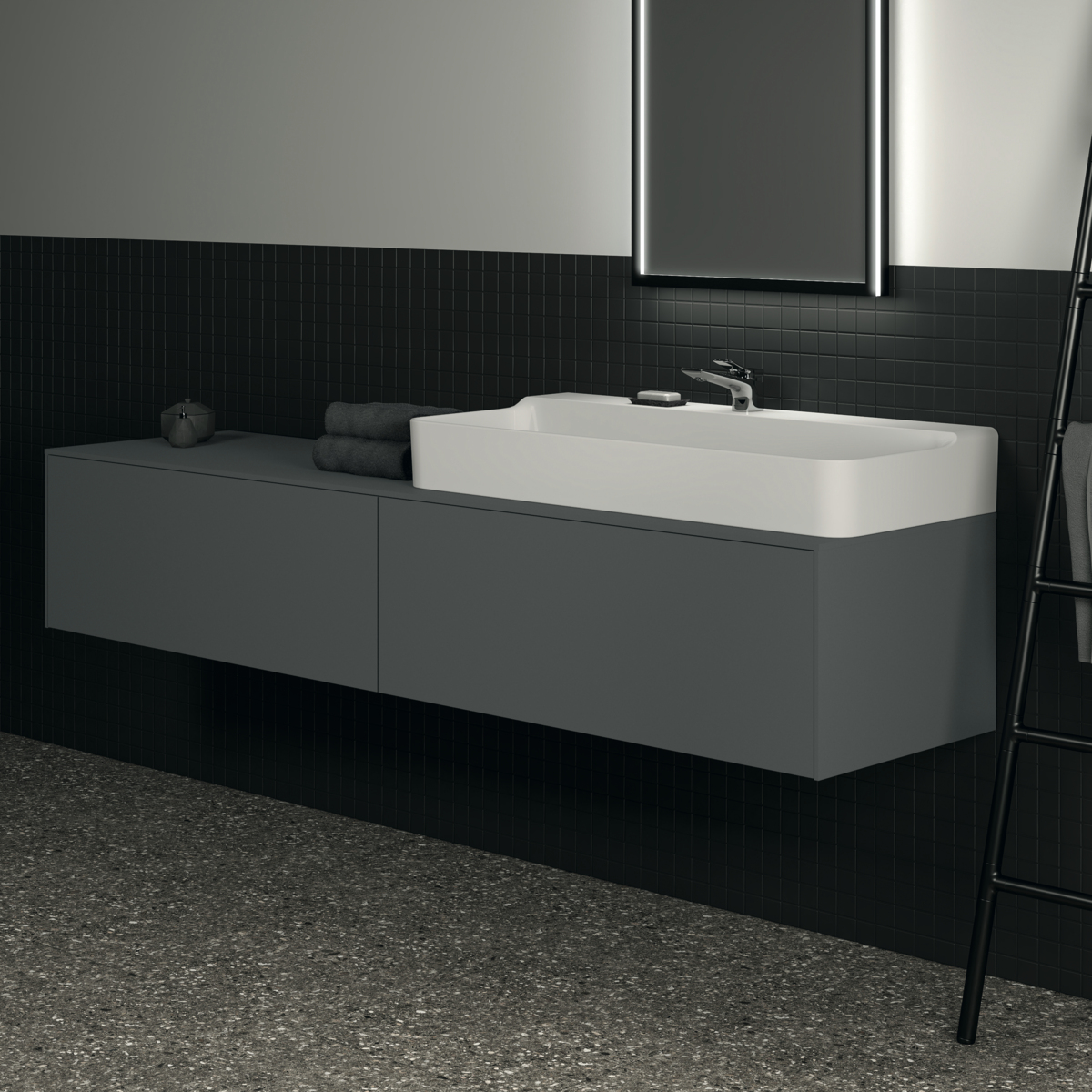 Модуль под раковину Conca 198,7х50,5х36 см, вырез в столешнице под заказ, антрацит матовый, система push-to-open, Ideal Standard