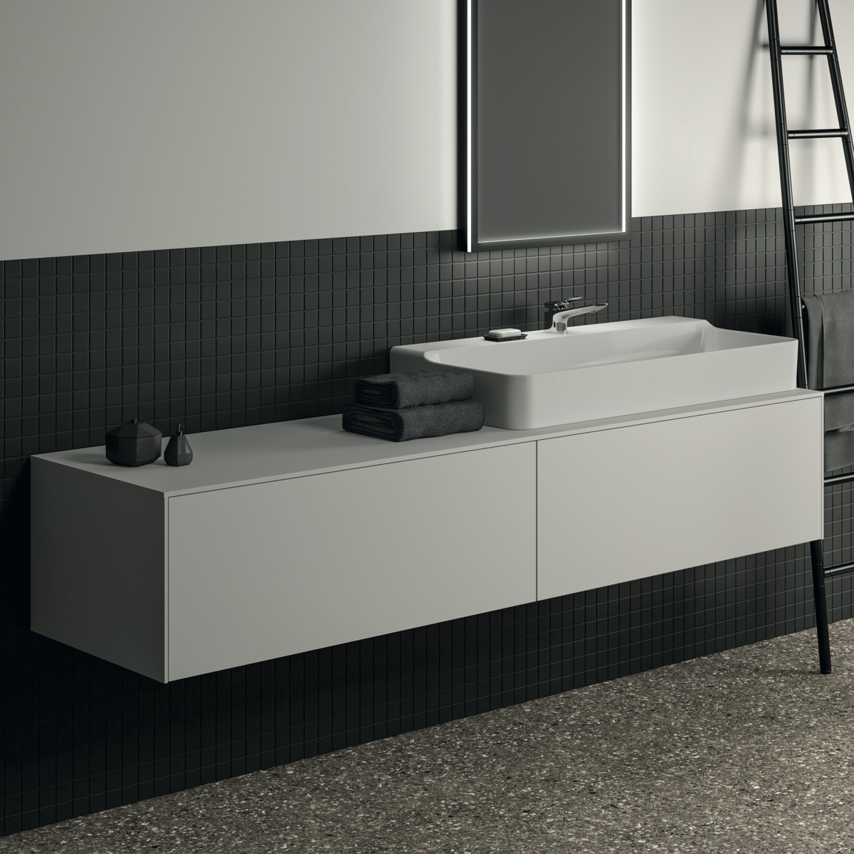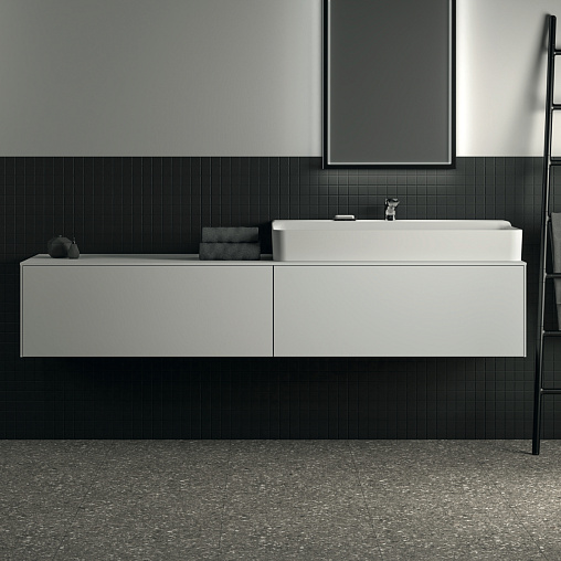 Модуль под раковину Conca 198,7х50,5х37 см, вырез в столешнице под заказ, белый матовый, система push-to-open, Ideal Standard