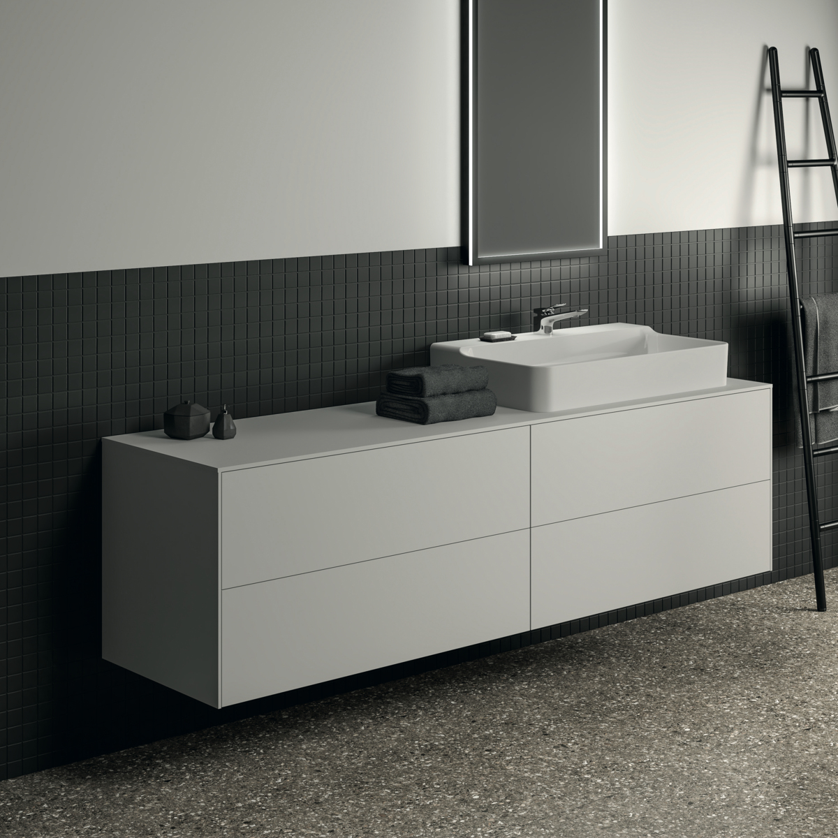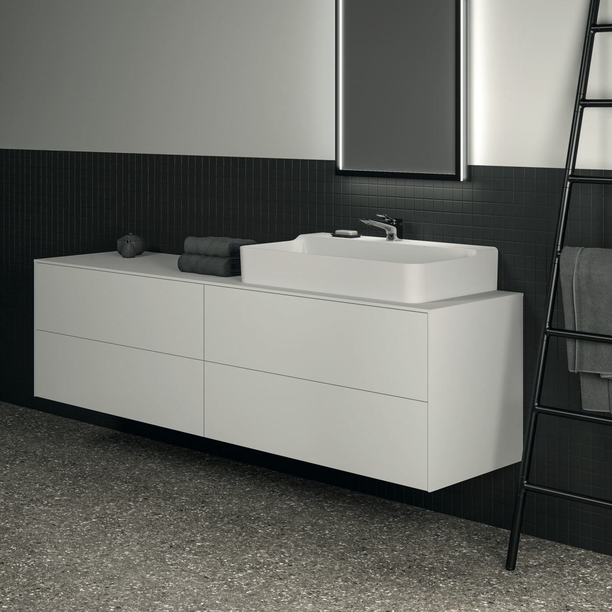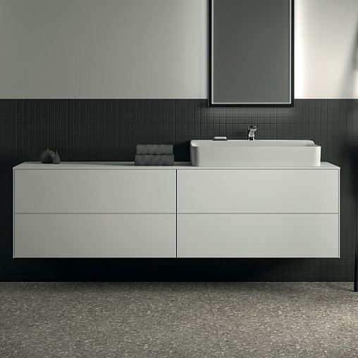 Модуль под раковину Conca 198,7х50,5х55 см, 4 ящика, вырез в столешнице под заказ, белый матовый, система push-to-open, Ideal Standard