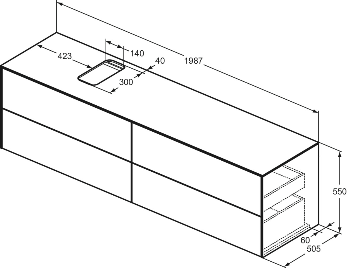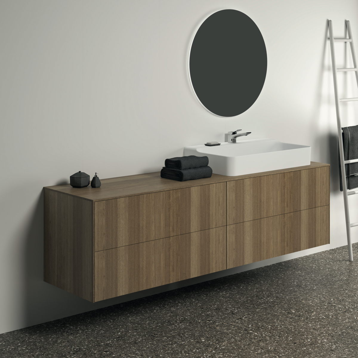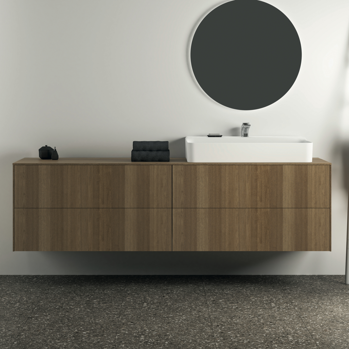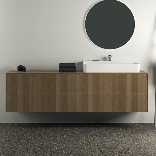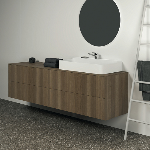 Модуль под раковину Conca 198,7х50,5х55 см, 4 ящика, вырез в столешнице под заказ, темный орех, система push-to-open, Ideal Standard