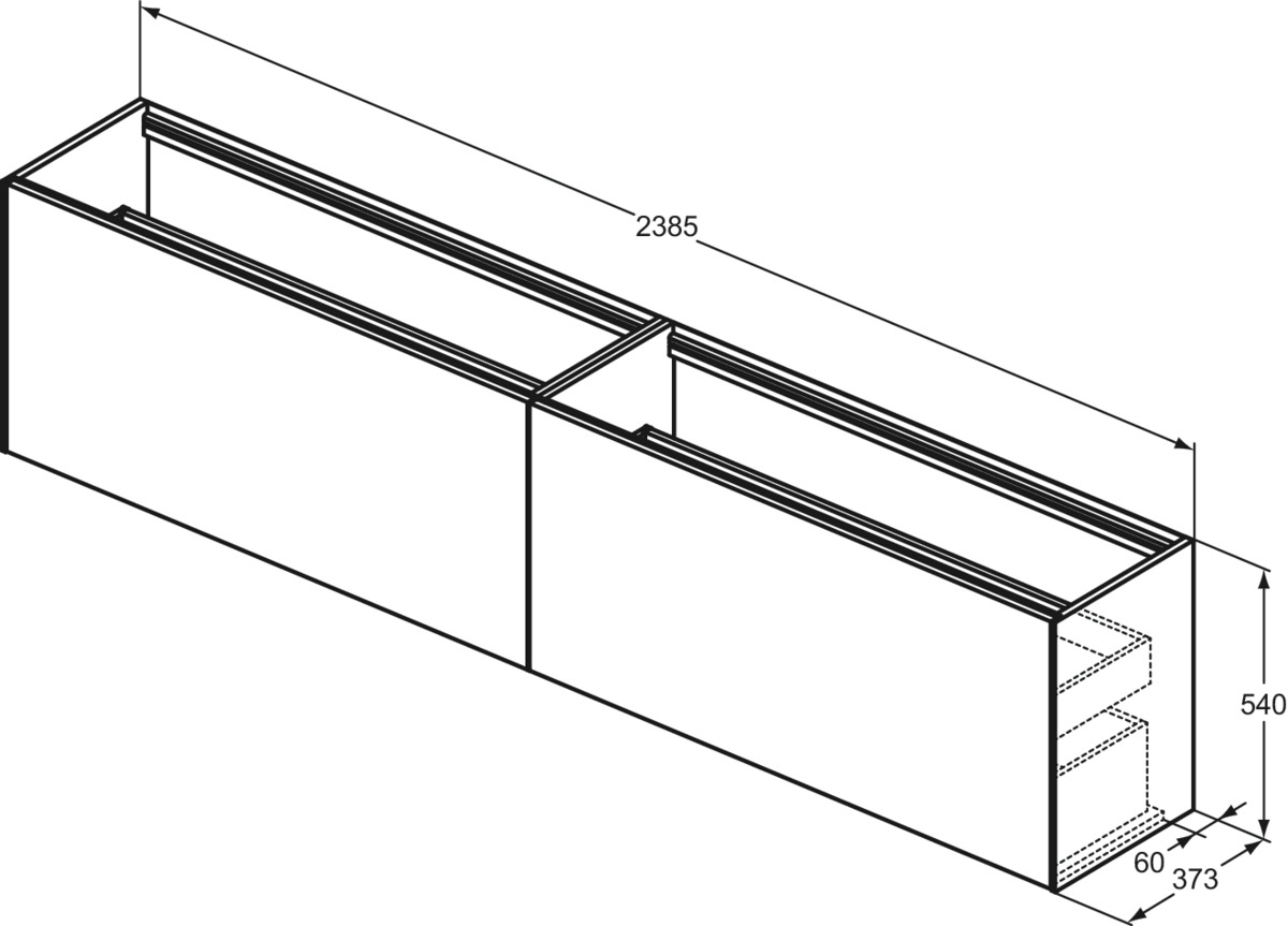 Модуль под раковину Conca 238,5х37,3х54 см, темный орех, система push-to-open, Ideal Standard