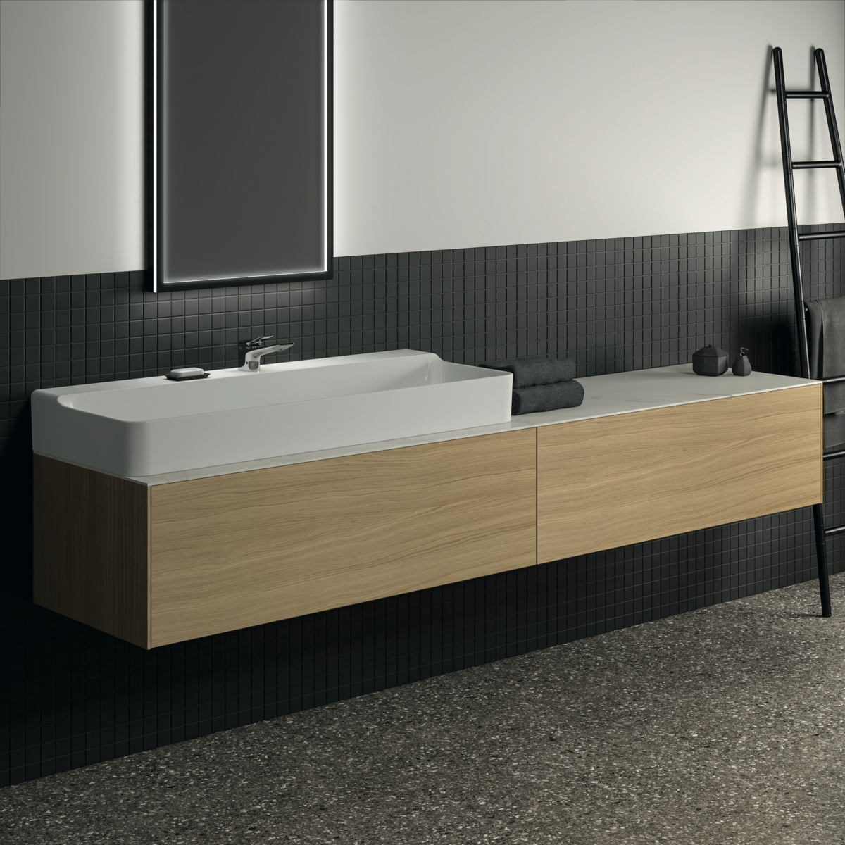 Модуль под раковину Conca 238,5х50,5х36 см, светлый дуб, система push-to-open, Ideal Standard