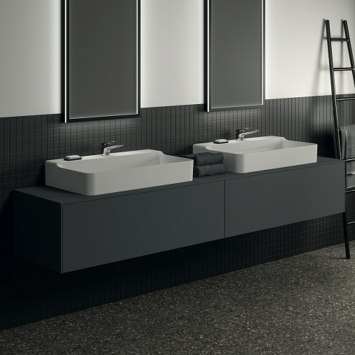 Модуль под раковину Conca 238,7х50,5х37 см, вырез в столешнице под заказ, антрацит матовый, система push-to-open, Ideal Standard