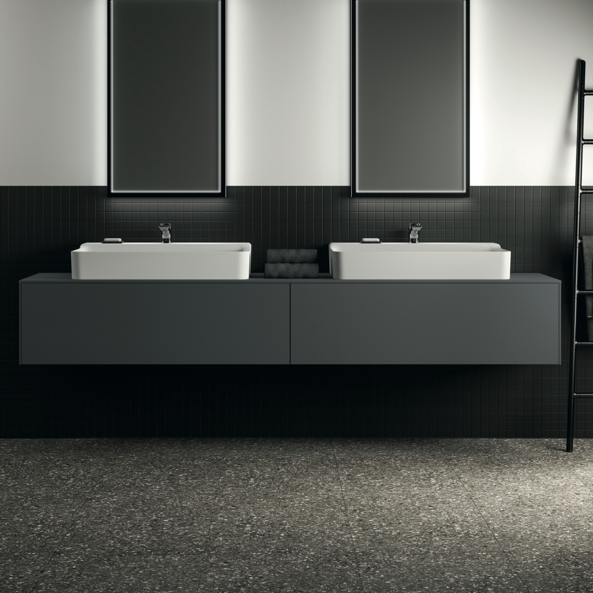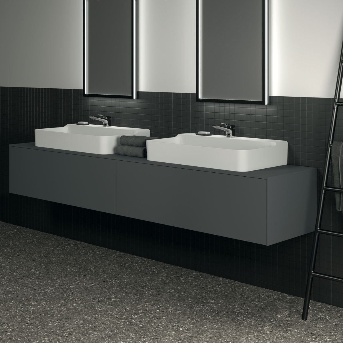 Модуль под раковину Conca 238,7х50,5х37 см, вырез в столешнице под заказ, антрацит матовый, система push-to-open, Ideal Standard