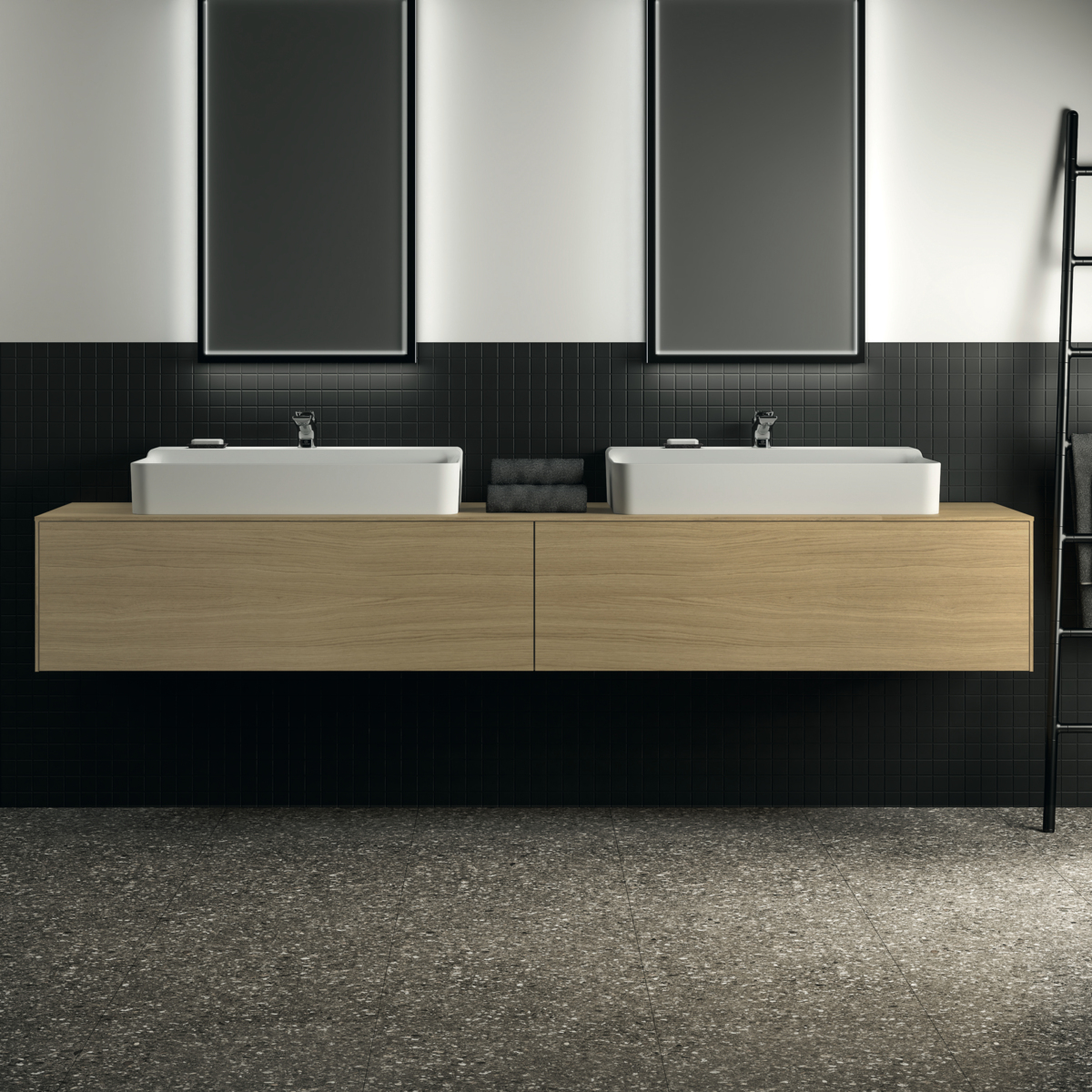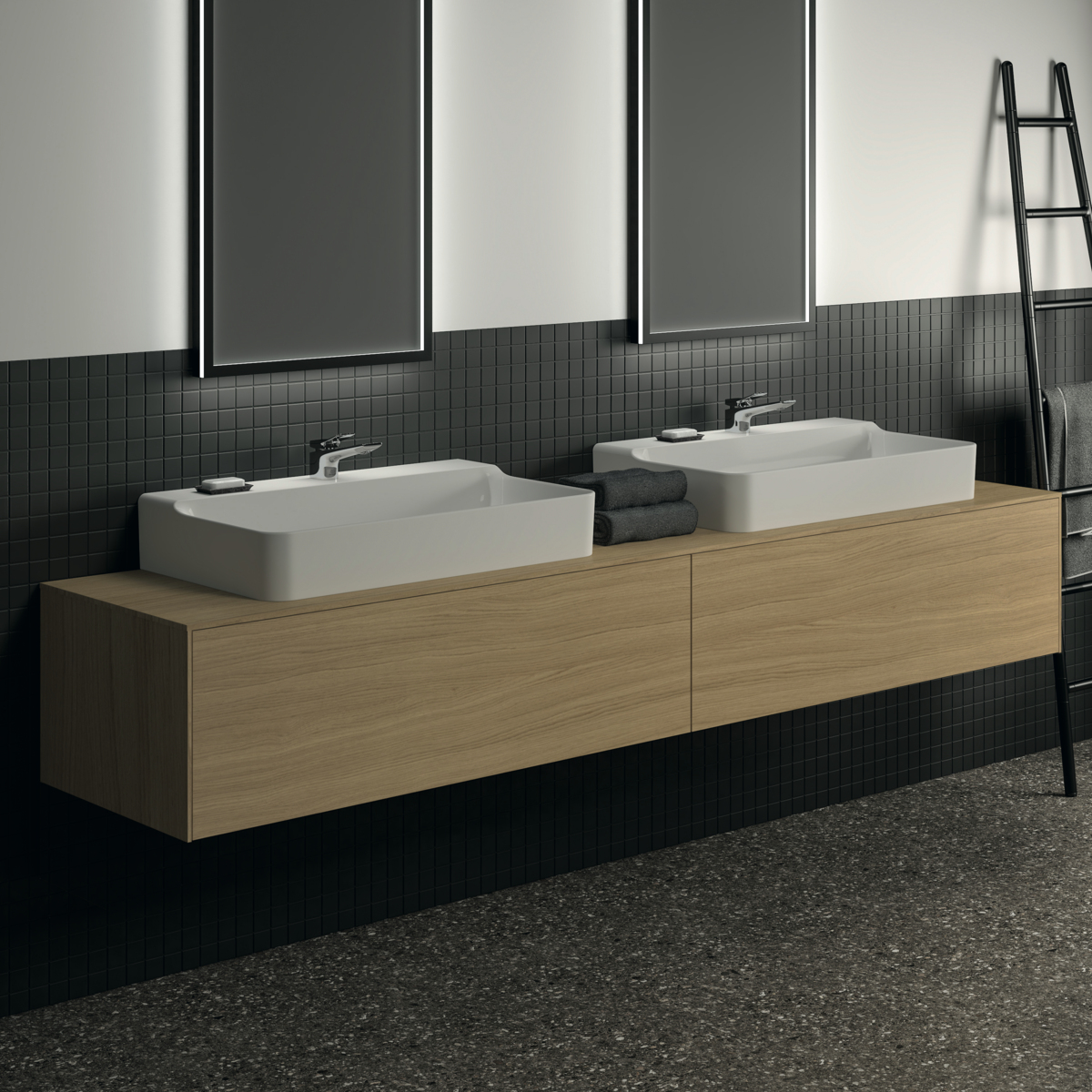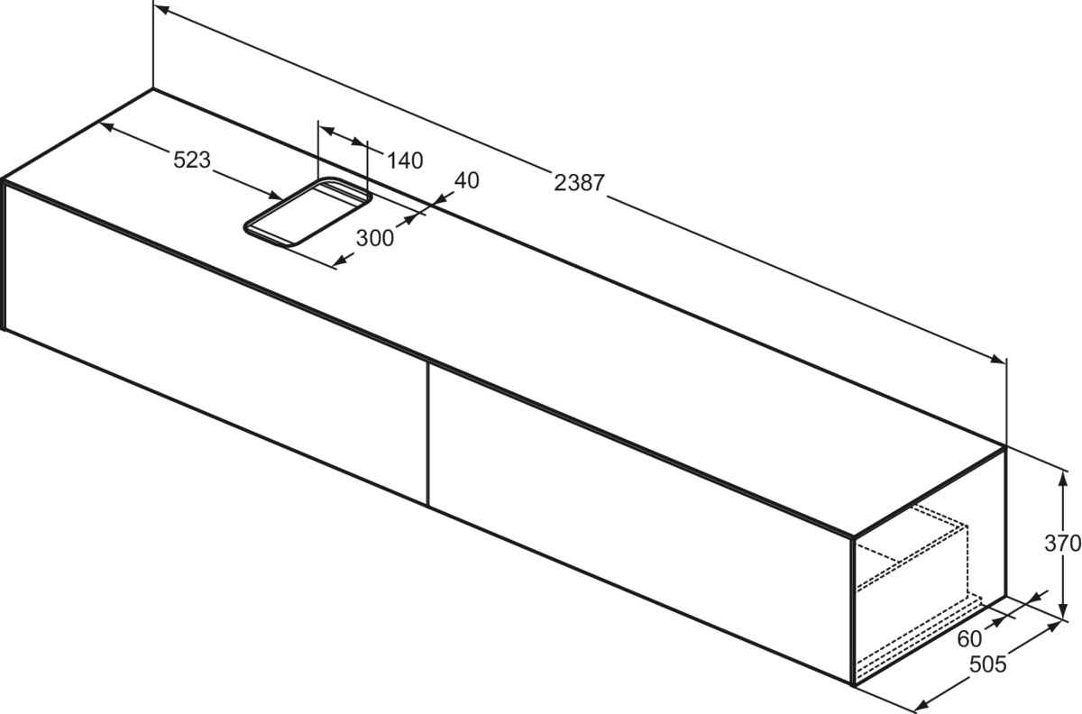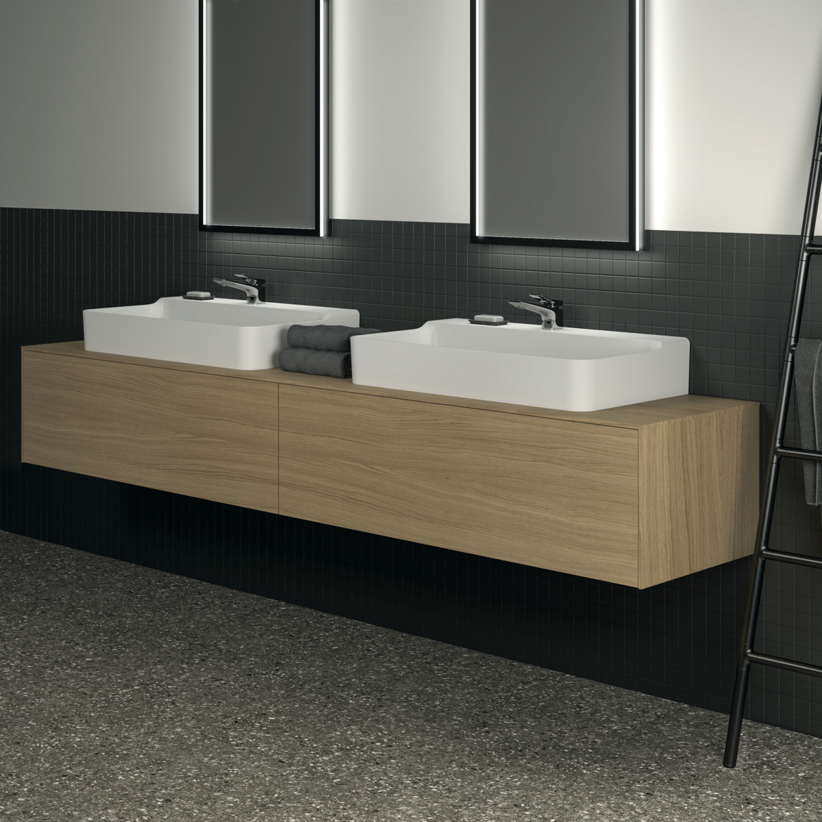Модуль под раковину Conca 238,7х50,5х37 см, вырез в столешнице под заказ, светлый дуб, система push-to-open, Ideal Standard
