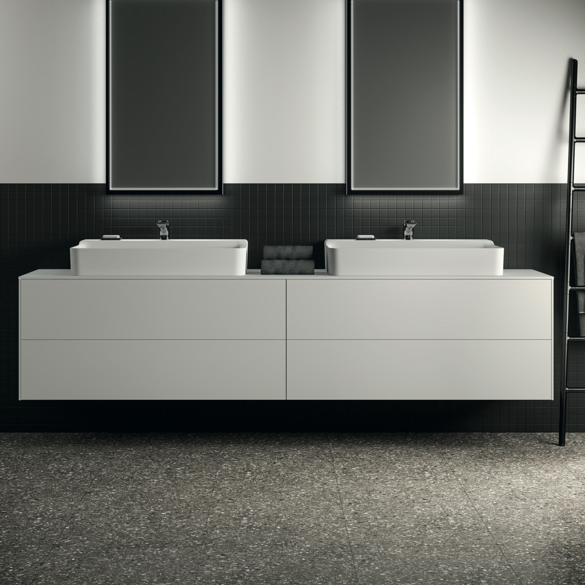 CONCA Тумба 240 см для раковины (вырез в столешнице под заказ). Комбинированная система для удобного использования (открытие "Push to open" + закрытие "Soft close"). Внутренняя отделка ящиков цвета антрацит. 4 ящика