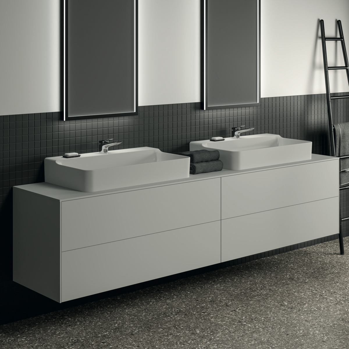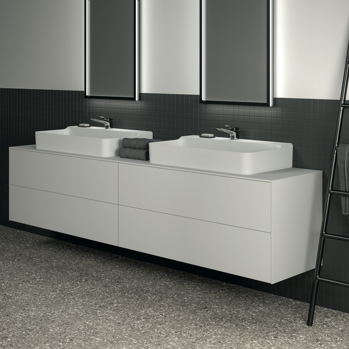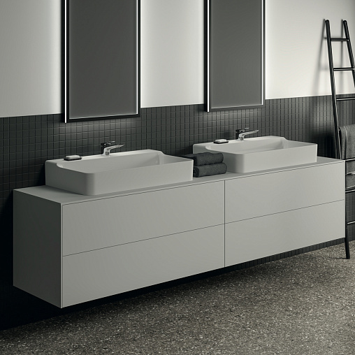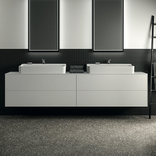 Модуль под раковину Conca 238,7х50,5х55 см, вырез в столешнице под заказ, 4 ящика, белый матовый, система push-to-open, Ideal Standard