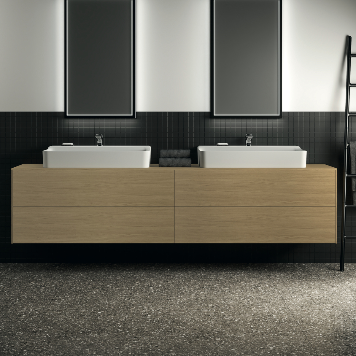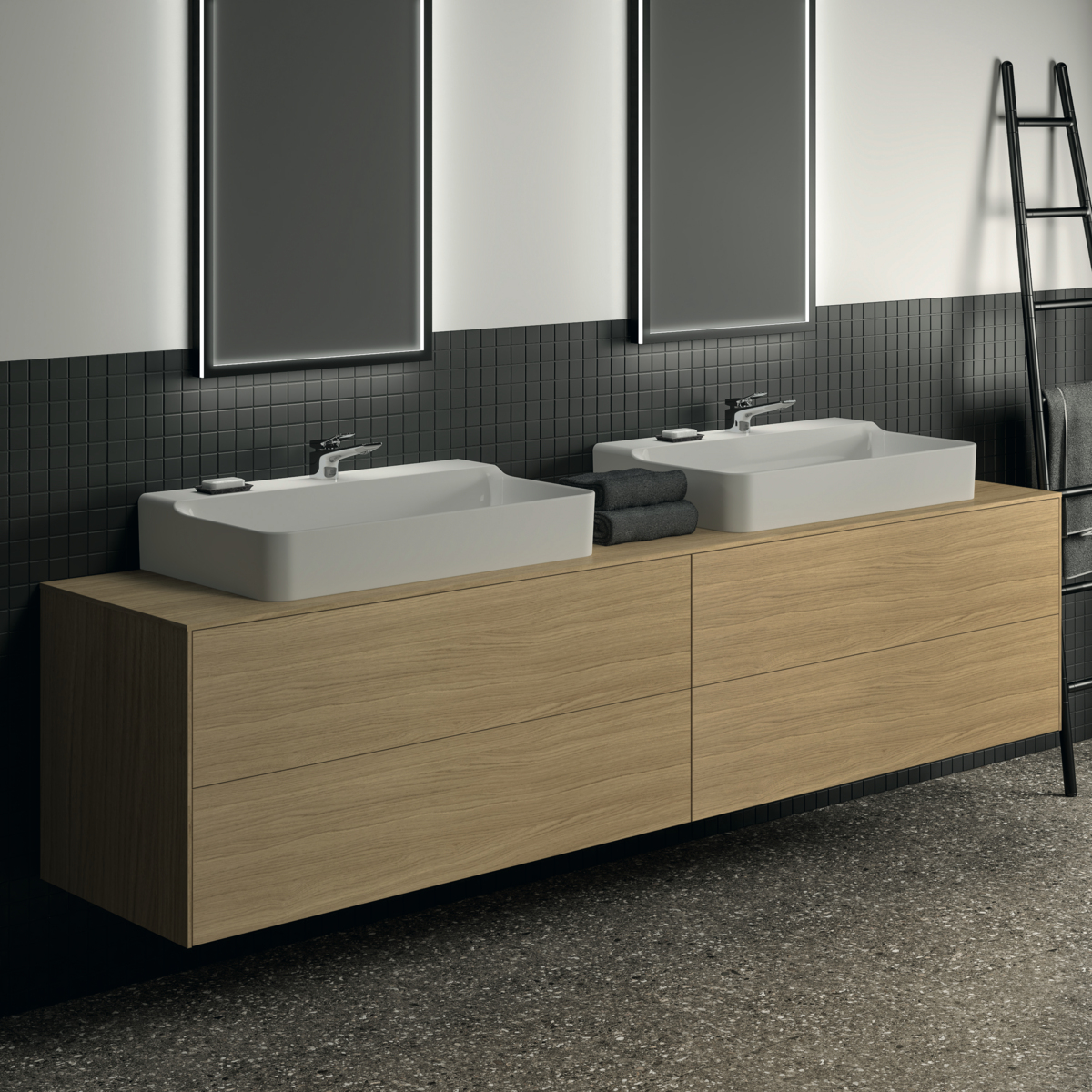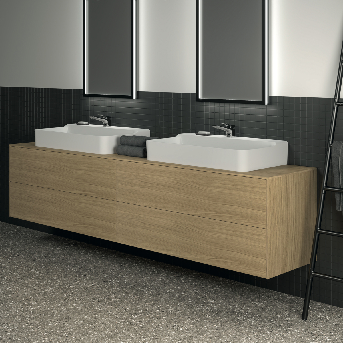 Модуль под раковину Conca 238,7х50,5х55 см, вырез в столешнице под заказ, светлый дуб, система push-to-open, Ideal Standard