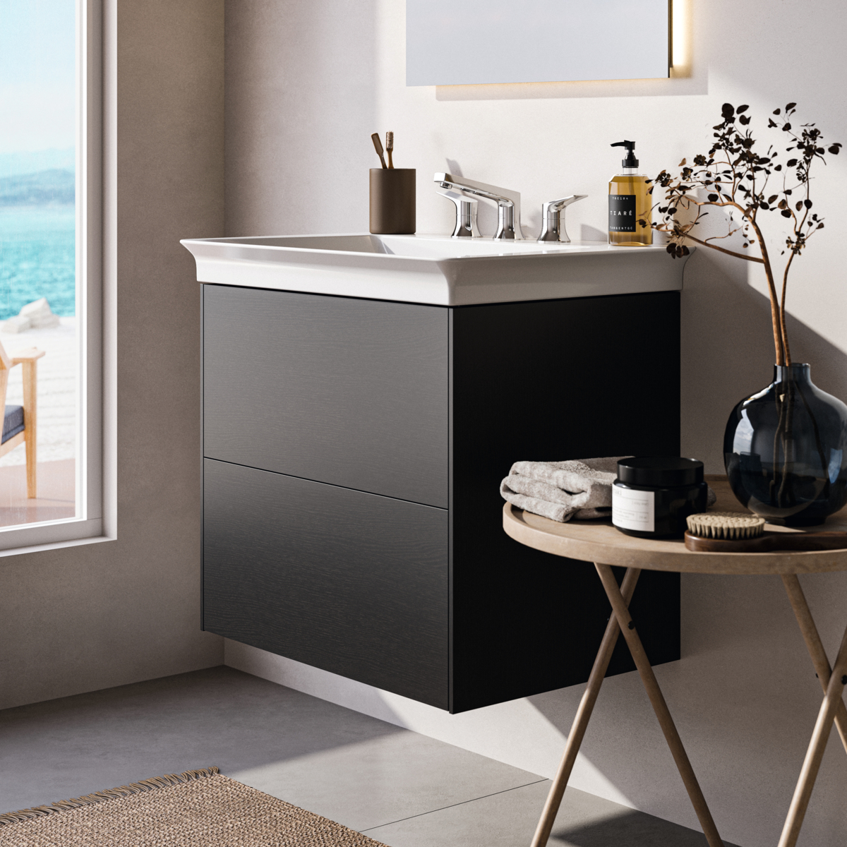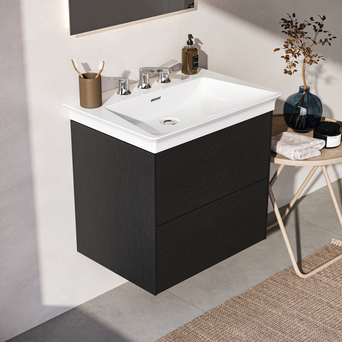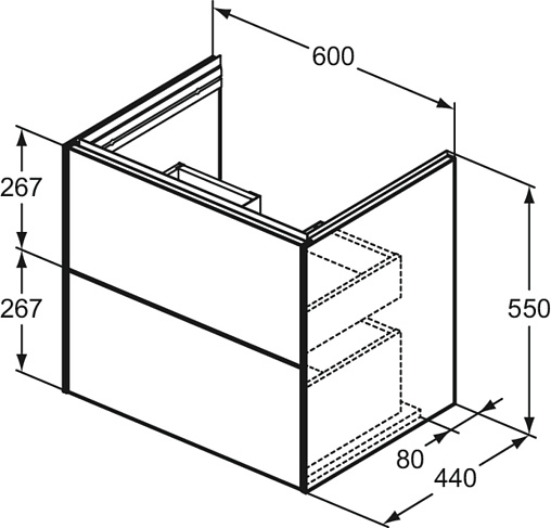 CONCA Тумба без столешницы 60х44 см, комбинированная система для удобного использования (открытие "Push to open" + закрытие "Soft close"). Внутренняя отделка ящиков цвета антрацит. 2 ящика. олнительно). Для монтажа с раковинами La Dolce Vita Symmetrical Vanity 66 см E264401; E270001; E267501 или Extra 60 см T388901; T389101; T389001 или Strada II Vanity 64 см T299101; T363301 или Connect Air Vanity 64 см E028901 или Tesi Vanity 62,5 см T351001 или I.Life A Vanity 64 см T461901 или Eurovit Vanity 61 см E066801