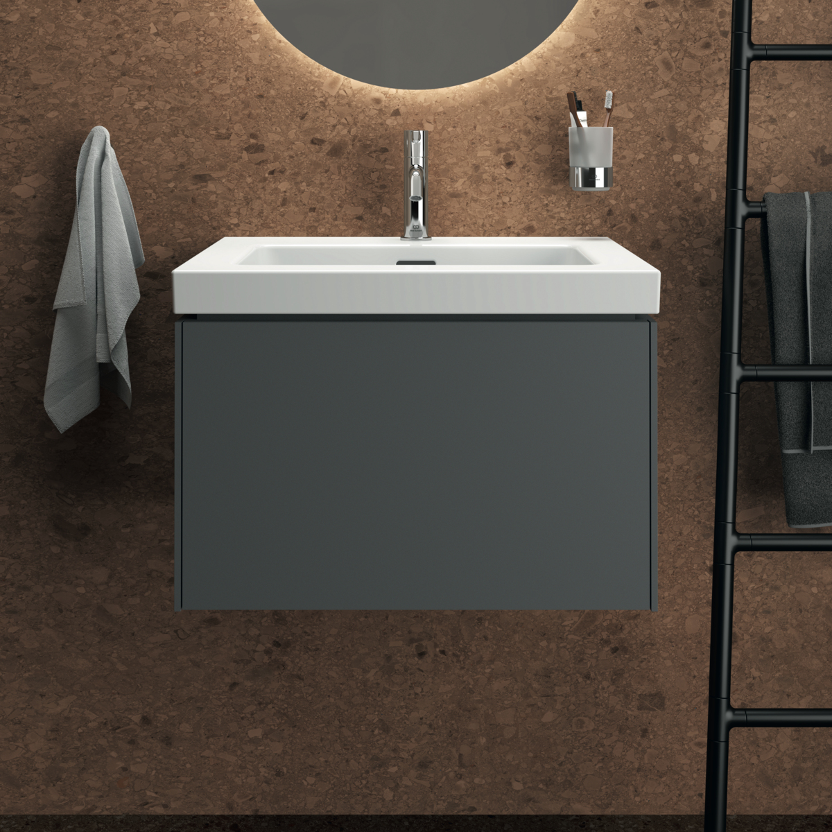 Модуль под раковину Conca 60х50,5х37 см, антрацит матовый, система push-to-open, Ideal Standard