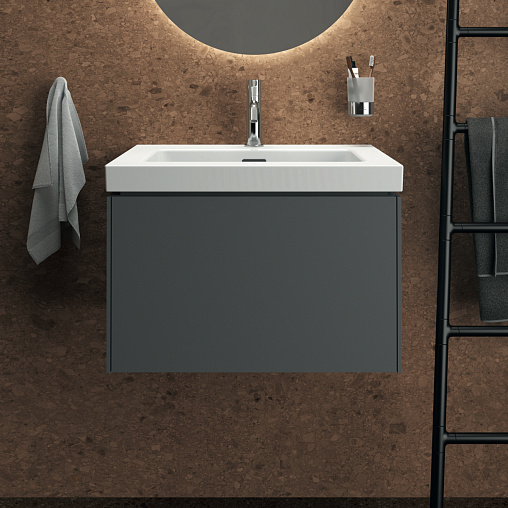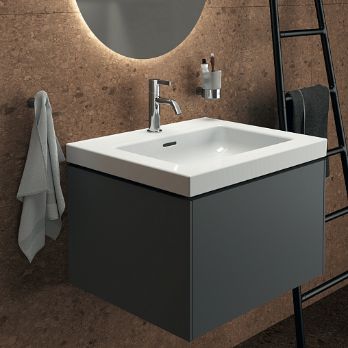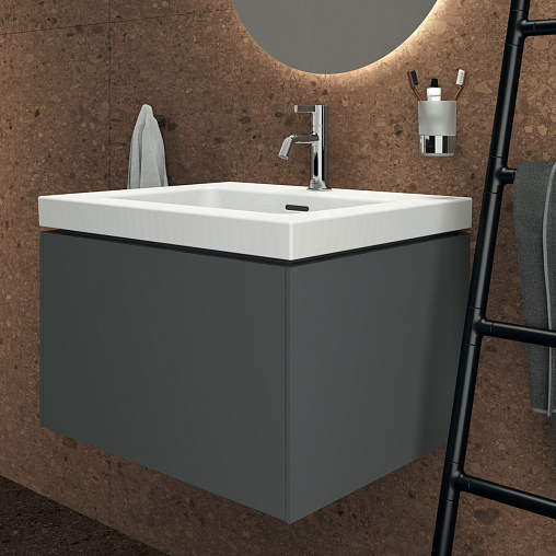 CONCA Тумба 60 см для раковины, без столешницы. Комбинированная система для удобного использования (открытие "Push to open" + закрытие "Soft close"). Внутренняя отделка ящиков цвета антрацит. 1 внешний ящик. Для монтажа с раковиной Extra Vanity 61 см или Calla Vanity 66,5 см или I.Life B Vanity 61 см