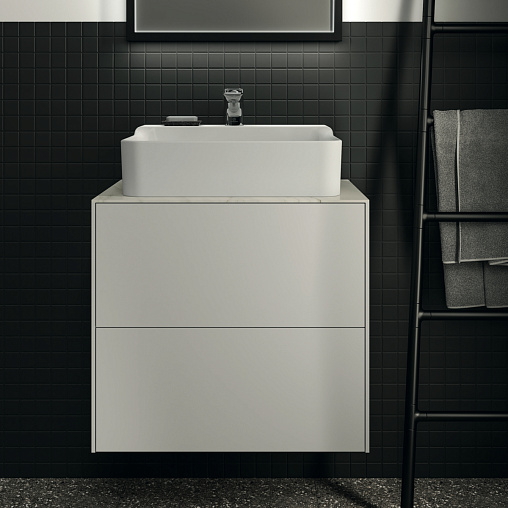 CONCA Тумба 60 см для раковины, без столешницы. Комбинированная система для удобного использования (открытие "Push to open" + закрытие "Soft close"). Внутренняя отделка ящиков цвета антрацит. 2 ящика. Для монтажа со столешницей из литьевого мрамора (без выреза / вырез под заказ) 60 см T3969.