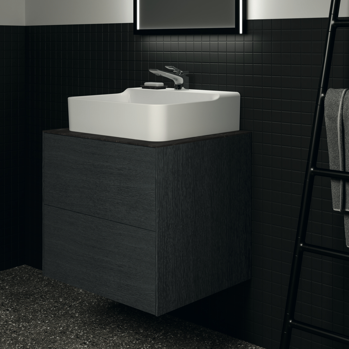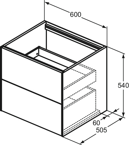 CONCA Тумба 60 см для раковины, без столешницы. Комбинированная система для удобного использования (открытие "Push to open" + закрытие "Soft close"). Внутренняя отделка ящиков цвета антрацит. 2 ящика. Для монтажа со столешницей из литьевого мрамора (без выреза / вырез под заказ) 60 см T3969.