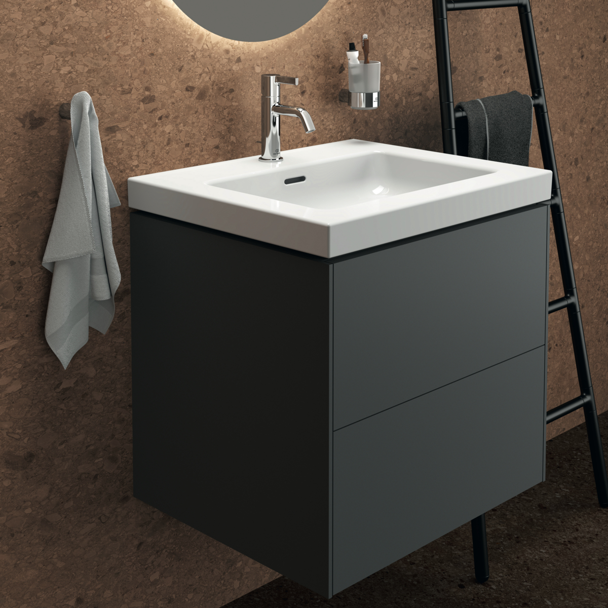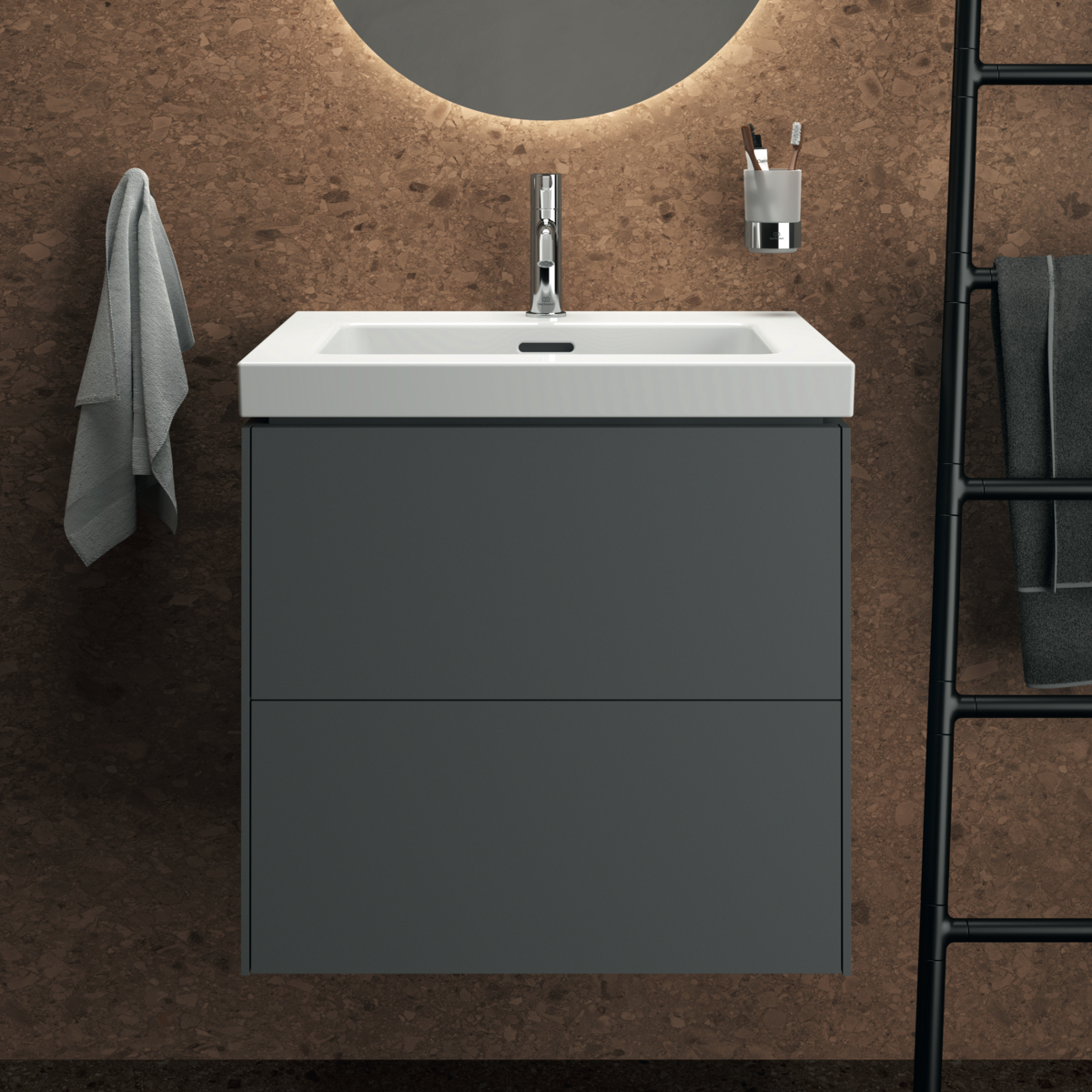 CONCA Тумба 60 см для раковины, без столешницы. Комбинированная система для удобного использования (открытие "Push to open" + закрытие "Soft close"). Внутренняя отделка ящиков цвета антрацит. 2 внешних ящика. Для монтажа с раковиной Extra Vanity 61 см или Calla Vanity 66,5 см или I.Life B Vanity 61 см