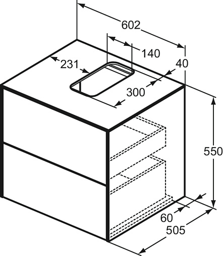 CONCA Тумба 60 см для раковины, центральный вырез в столешнице. Комбинированная система для удобного использования (открытие "Push to open" + закрытие "Soft close"). Внутренняя отделка ящиков цвета антрацит. 2 ящика. Для монтажа с раковинами Conca 40/50 см (с шлифованной нижней поверхностью) или Conca vessel 45 см или Extra 45/50 см (с шлифованной нижней поверхностью) или Extra vessel 50 см или Ipalyss vessel 40/55/60 см или Linda-X 50/60 см (с шлифованной нижней поверхностью)