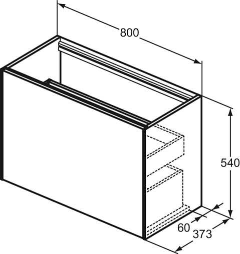CONCA Тумба 80 см для раковины, узкая проекция 37 см, без столешницы. Комбинированная система для удобного использования (открытие "Push to open" + закрытие "Soft close"). Внутренняя отделка ящиков цвета антрацит. 1 внешний и 1 внутренний ящик. Для монтажа со столешницей из литьевого мрамора (без выреза / вырез под заказ) 80 см T4345.