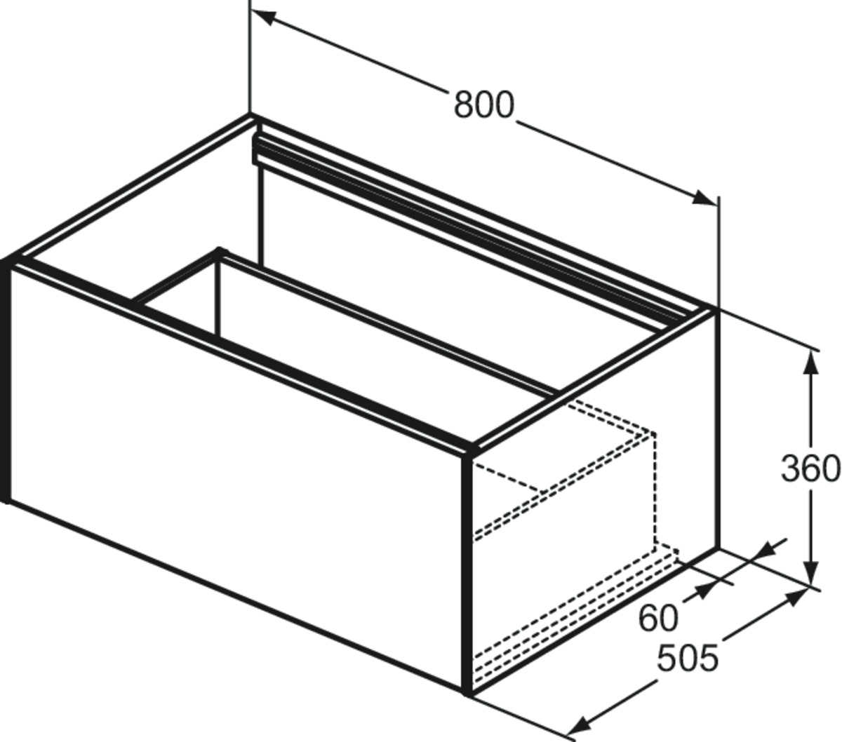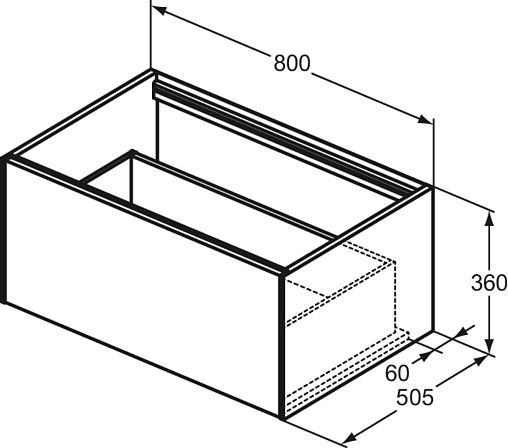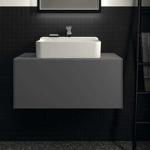 CONCA Тумба 80 см для раковины, без столешницы. Комбинированная система для удобного использования (открытие "Push to open" + закрытие "Soft close"). Внутренняя отделка ящиков цвета антрацит. 1 ящик. Для монтажа со столешницей из литьевого мрамора (без выреза / вырез под заказ) 80 см T3970.