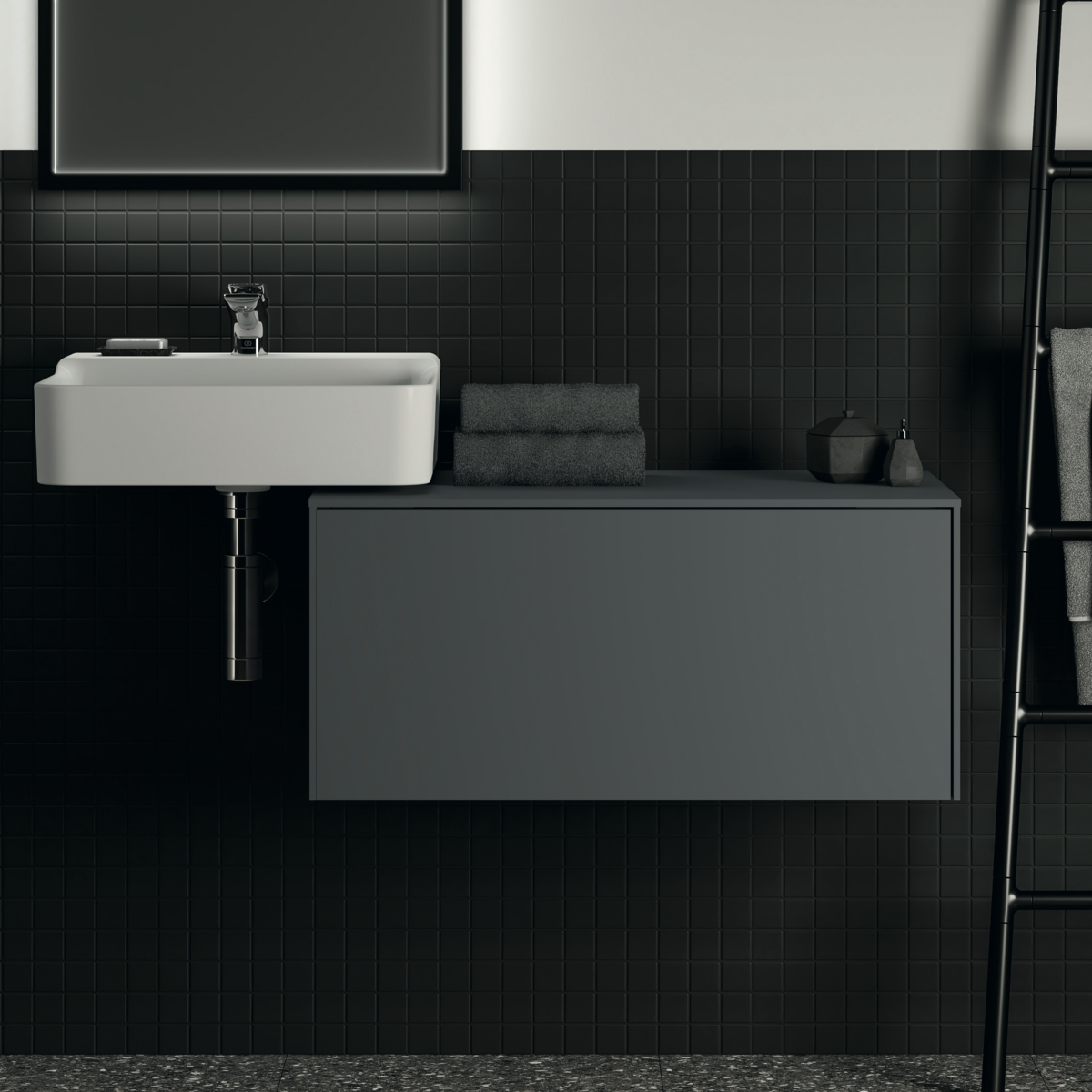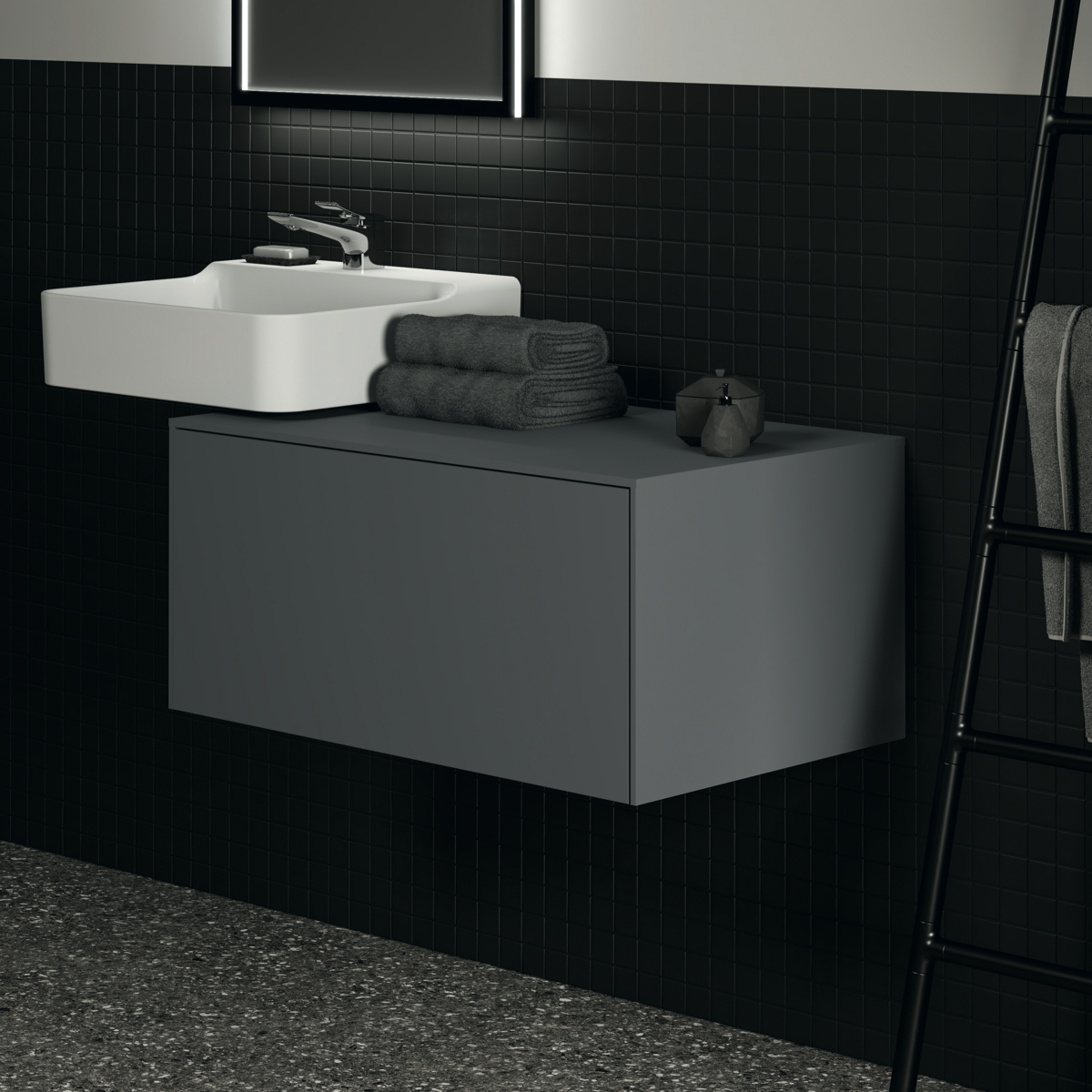 Модуль под раковину Conca 80х50,5х37 см, без выреза в столешнице, антрацит матовый, система push-to-open, Ideal Standard