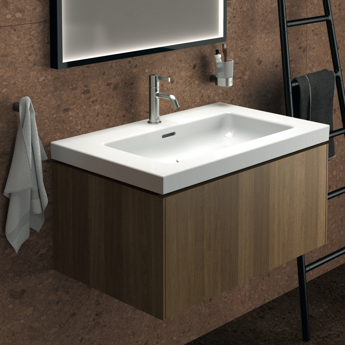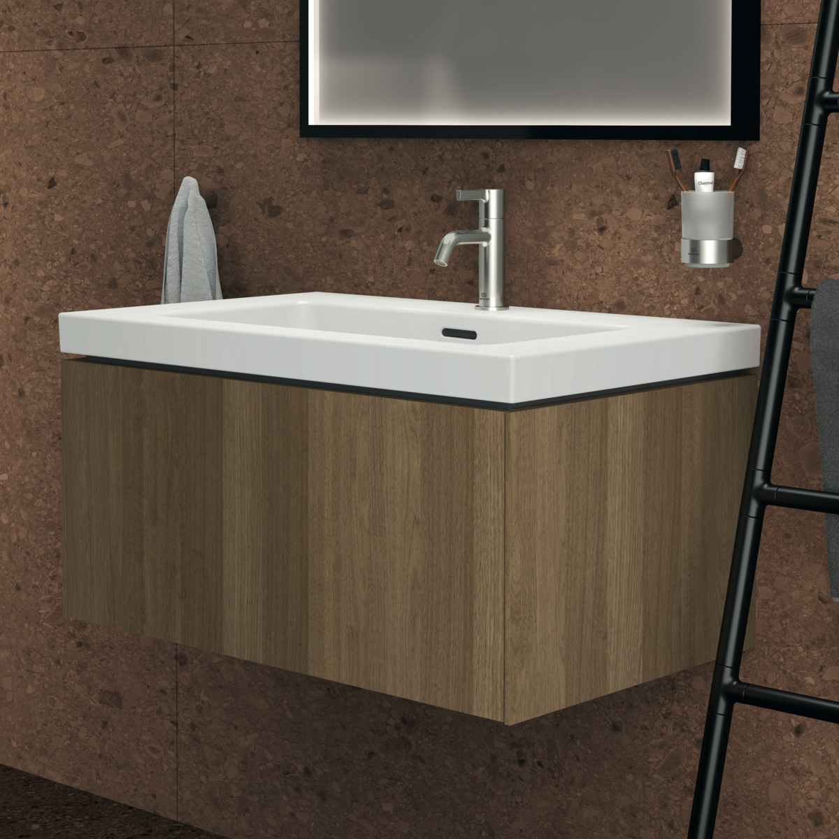 CONCA Тумба 80 см для раковины, без столешницы. Комбинированная система для удобного использования (открытие "Push to open" + закрытие "Soft close"). Внутренняя отделка ящиков цвета антрацит. 1 внешний ящик. Для монтажа с раковиной Extra Vanity 81 см или Calla Vanity 86,5 см или I.Life B Vanity 81 см