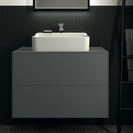 CONCA Тумба 80 см для раковины, без столешницы. Комбинированная система для удобного использования (открытие "Push to open" + закрытие "Soft close"). Внутренняя отделка ящиков цвета антрацит. 2 ящика. Для монтажа со столешницей из литьевого мрамора (без выреза / вырез под заказ) 80 см T3970.