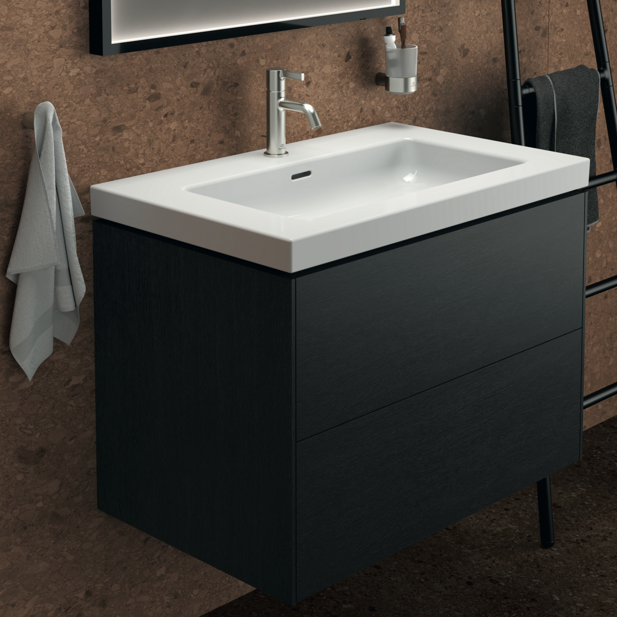 CONCA Тумба 80 см для раковины, без столешницы. Комбинированная система для удобного использования (открытие "Push to open" + закрытие "Soft close"). Внутренняя отделка ящиков цвета антрацит. 2 внешних ящика. Для монтажа с раковиной Extra Vanity 81 см или Calla Vanity 86,5 см или I.Life B Vanity 81 см