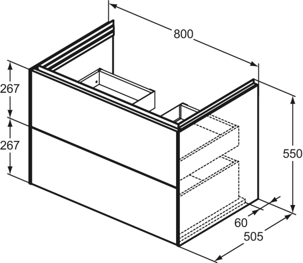 CONCA Тумба 80 см для раковины, без столешницы. Комбинированная система для удобного использования (открытие "Push to open" + закрытие "Soft close"). Внутренняя отделка ящиков цвета антрацит. 2 внешних ящика. Для монтажа с раковиной Extra Vanity 81 см или Calla Vanity 86,5 см или I.Life B Vanity 81 см