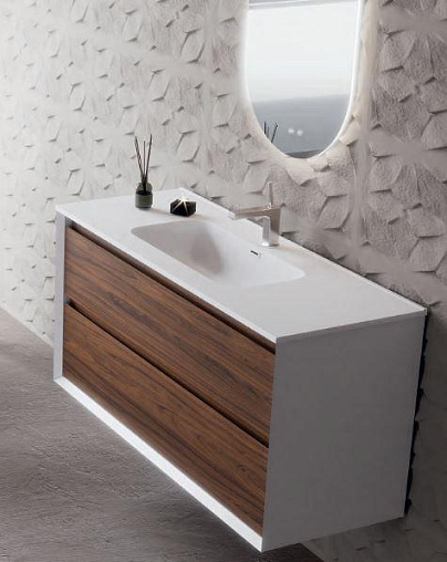 Подвесная тумба под раковину NOFER серии F5 коллекции COOL выполнена из высококачественной влагостойкой фанеры. Тумба изготовлена из доски толщиной 19 мм. Внутренняя отделка тумбы и ящиков цвет антрацит. Ультратонкие металлические ящики 2 мм, системой бесшумного, плавного закрывания. Верхний ящик высотой 12 см. с углублением для сифона. Нижний ящик высотой 15 см. Система для монтажа тумбы в комплекте.