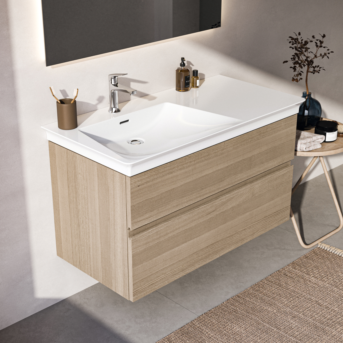 Модуль под раковину Finesse 100х50,5х55 см, левосторонний, светлый дуб (натуральный шпон), Ideal Standard